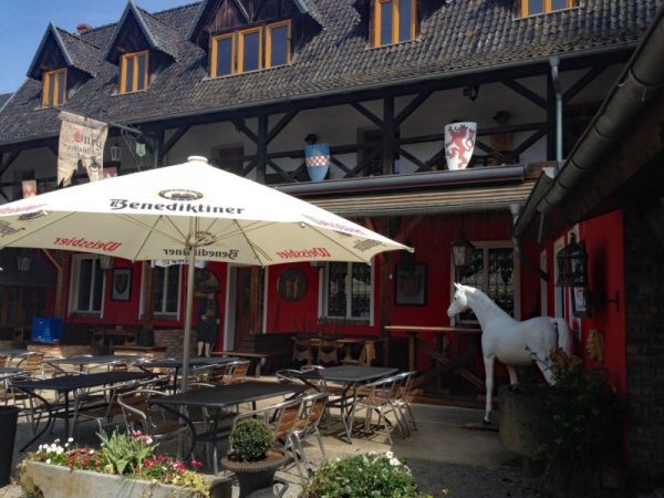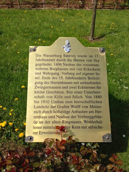 Wir starten am Bahnhof in Satzvey, von dort aus zu Fuß zur Burg. Die Burg Satzvey ist eine zweiteilige Anlage bestehend aus Hochburg und Torburg die um 1450 errichtet wurde. Heute ist Burg Satzvey vor allem bekannt durch die hier jedes Jahr stattfindenden Ritterspiele und viele andere Veranstaltungen.