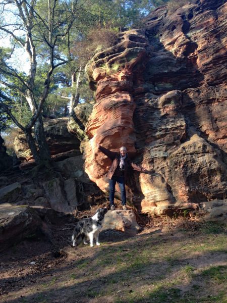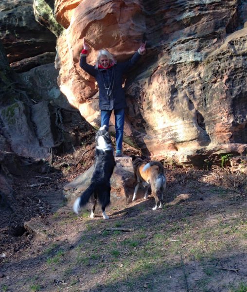All das liegt ja bekanntlich in der Voreifel, somit hat der Weg viele Steigungen und war ganz schön anstrengend. Vom Hochwildpark haben wir noch einen Abstecher zum Naturschutzgebiet Katzensteine gemacht. Im „Mechernicher Wald“, der sich von der östlichen Stadtgrenze Mechernichs bis Satzvey erstreckt, erheben sich an der Grenze zur Veybachaue bei Katzvey die Katzensteine. Die markante Felsformation aus Buntsandstein-Naturfelsen entstammt einer mächtigen Flussablagerung, die vor ca. 220 Millionen Jahren die gesamte Eifel überdeckte. Im Laufe der Jahrmillionen haben Hebungs- und Senkungsvorgänge der Erdkruste sowie Regen, Wind und Frost zum derzeitigen Aussehen beigetragen.