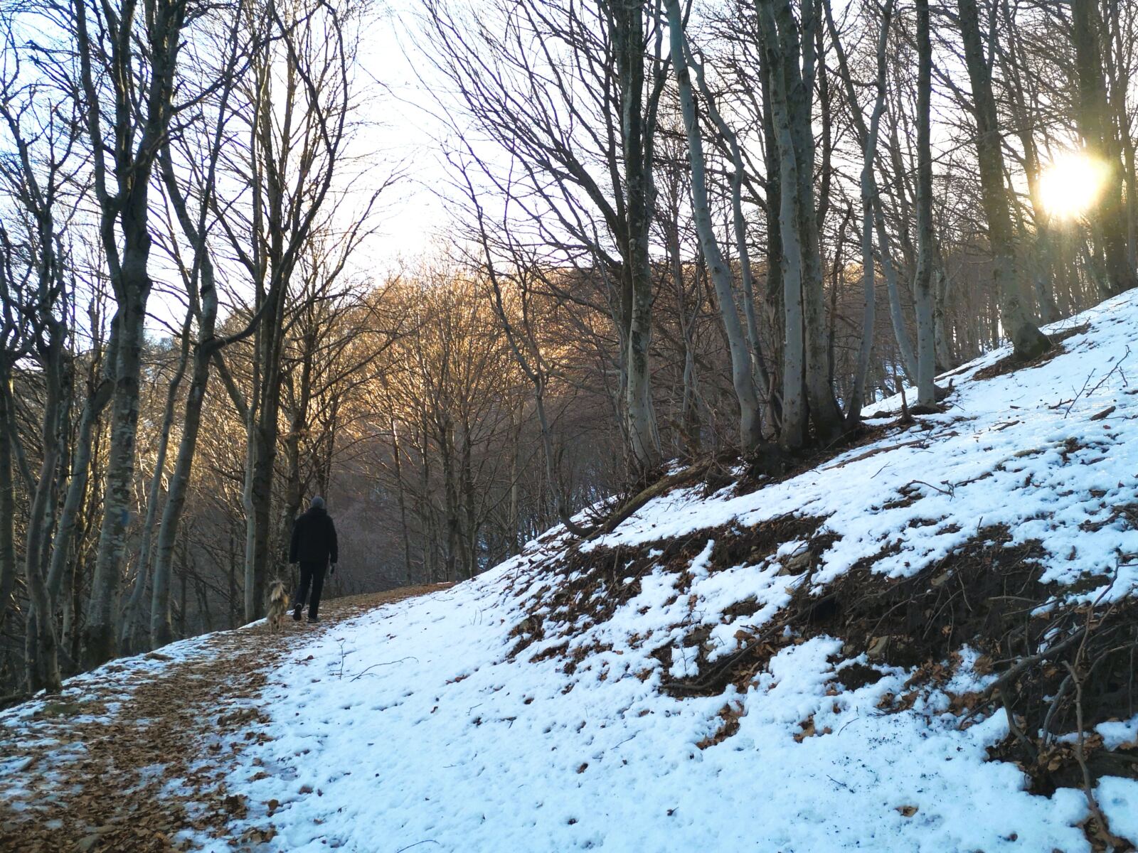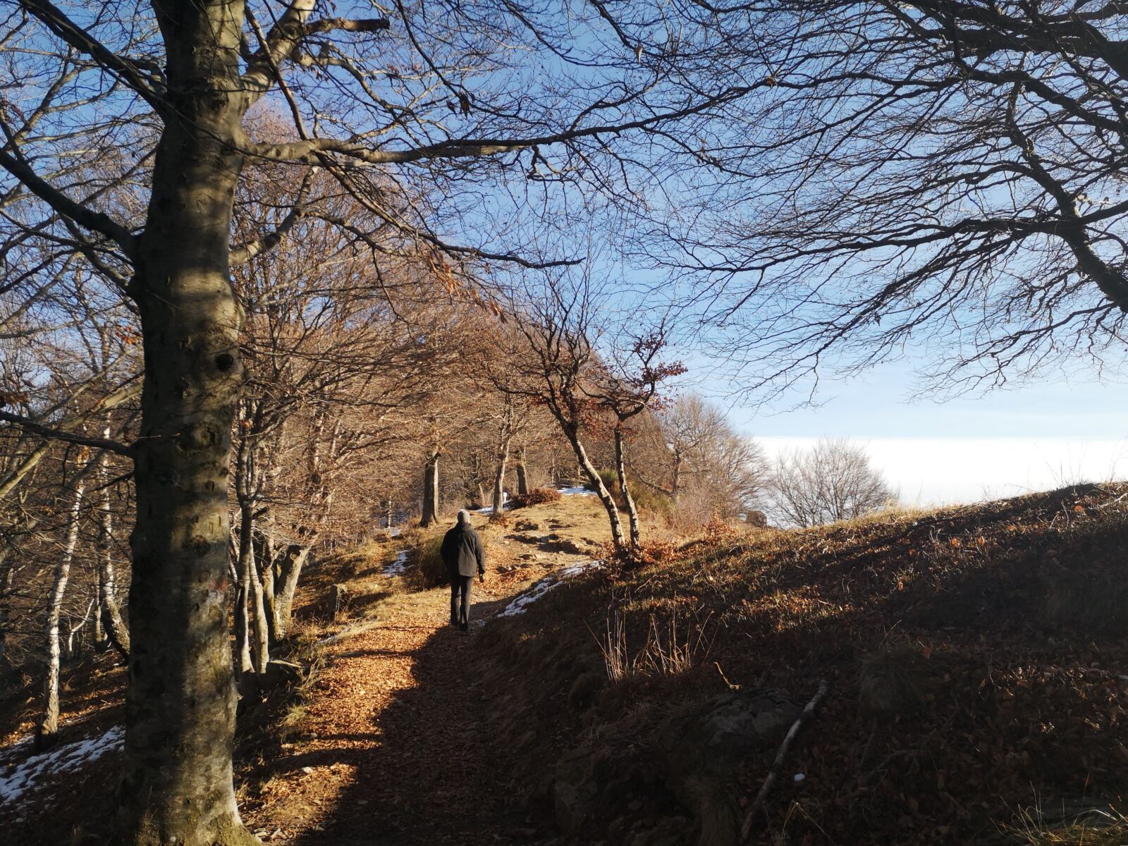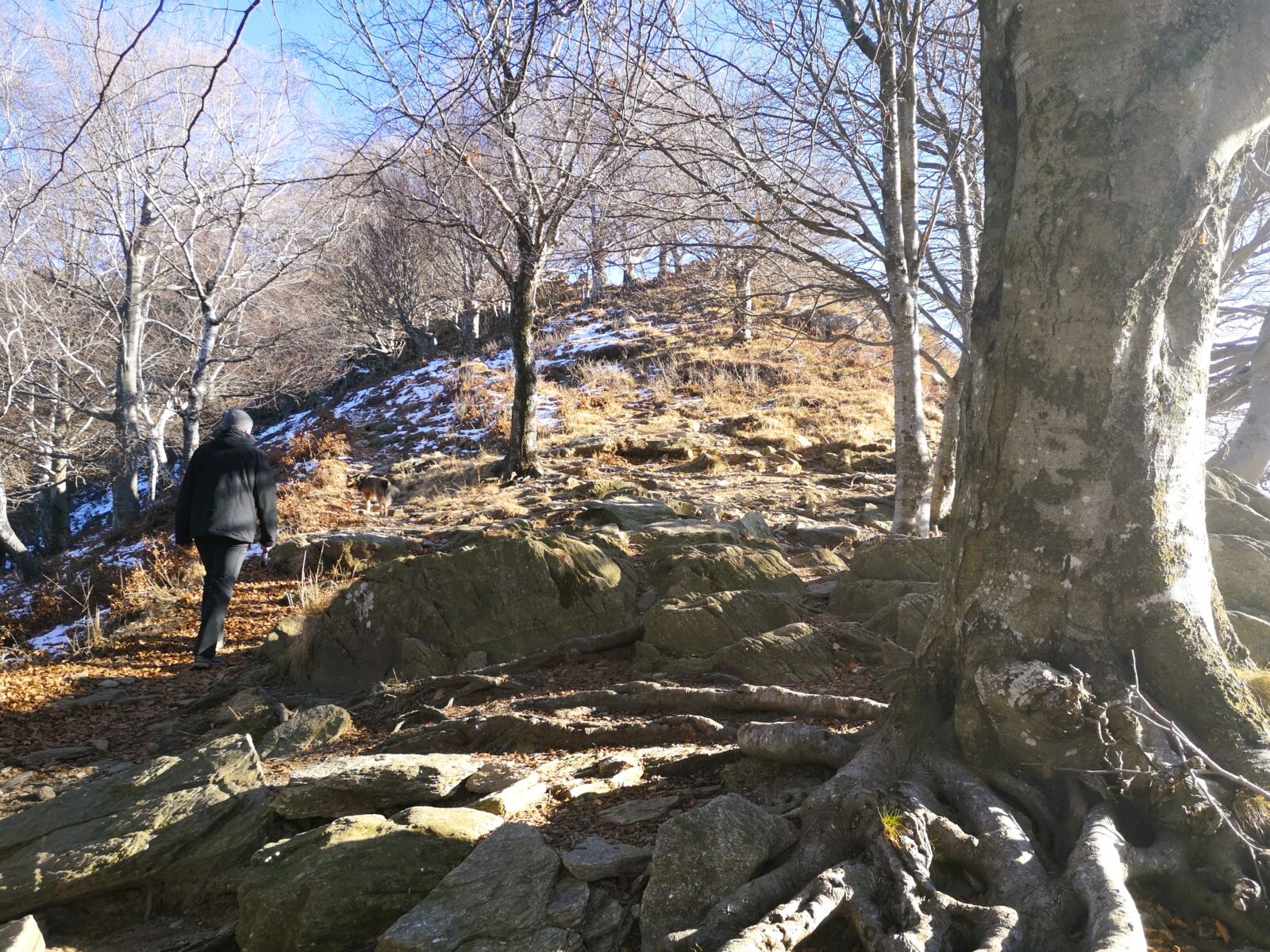 Unsere kleine Wanderung verbindet Natur und Geschichte mit tollen Ausblicken auf den ganzen See. 🤩🐕 Viel zu Schauen für wenig Anstrengung. Für Hund und Mensch problemlos zu meistern. Bis auf die letzten Meter zum Gipfel, der kurz und etwas steil ist, gibt es kaum Steigungen. Wir sind zunächst auf laubbedeckten Waldwegen unterwegs, dann auf einem breiten sandigen Balkonweg, die einstige Militärstraße der „Linea Cardona“. Zurück laufen wir auf dem kaum befahrenen Teesträßchen, das hauptsächlich als Zufahrt zu einem Klinikkomplex für Wachstumsstörungen und Adipositas genutzt wird.