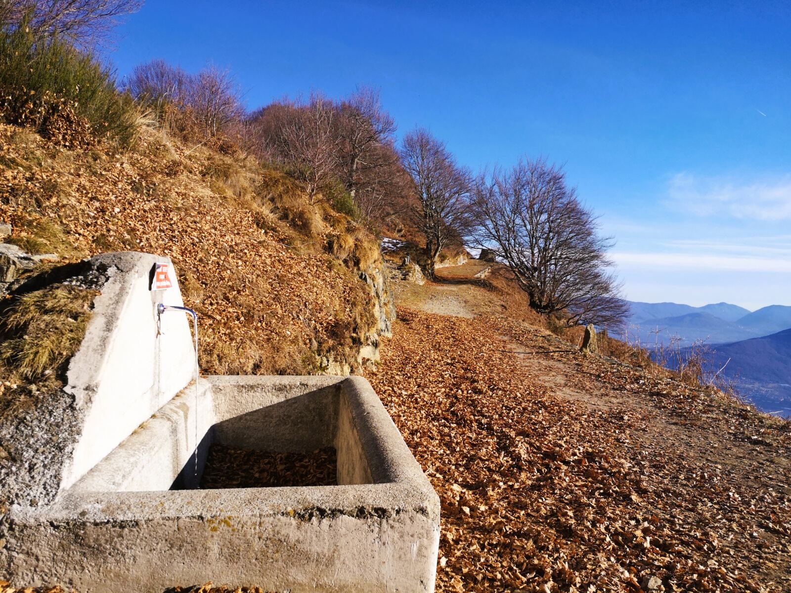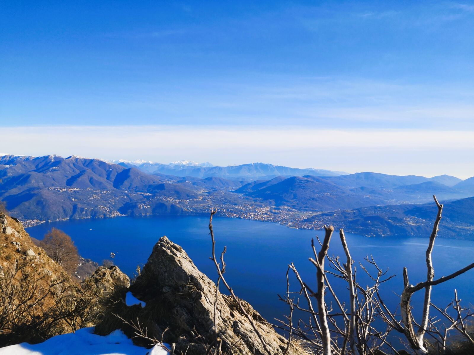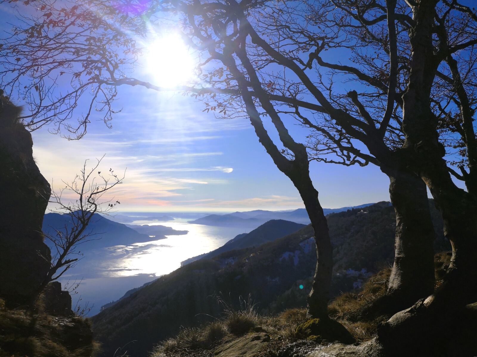 🗺️Wegbeschreibung: Vom Parkplatz „Il Colle“ überqueren wir die Straße, auf der wir gekommen sind. Links neben einem Brunnen am Straßenrand folgen wir dem rot-weiß-rot markierten Wanderweg Richtung Monte Morissolo (gallerie) geradeaus durch den Laubwald. Eine gute dreiviertel Stunde wandern wir auf dem schönen schmalen Pfad durch den Wald – und erreichen schließlich offenes Gelände. Rechts von uns führt die alte Militärstraße „Linea Cardona“ am Berg entlang, unter uns liegt der See in der Sonne, links von uns führt ein schmaler, recht steiler Pfad hinauf auf die Cima di Morossolo. Wir folgen dem Pfad, der zeitweise kaum zu erkennen ist. An einer Kreuzung halten wir uns rechts und steigen hinauf zum Gipfel. Hier hätten wir uns aber offensichtlich links und geradeaus halten müssen, um den offiziellen Gipfel mit den 3 Gipfelkreuzen zu erreichen. Auch vom falschen Gipfel ist die Aussicht auf den kompletten See traumschön. ⚠️🐕🦺 Achtung: Hier fallen die Wände teils sehr steil ab. Übermütige Hunde sollte man nahe bei sich und an der Leine halten.