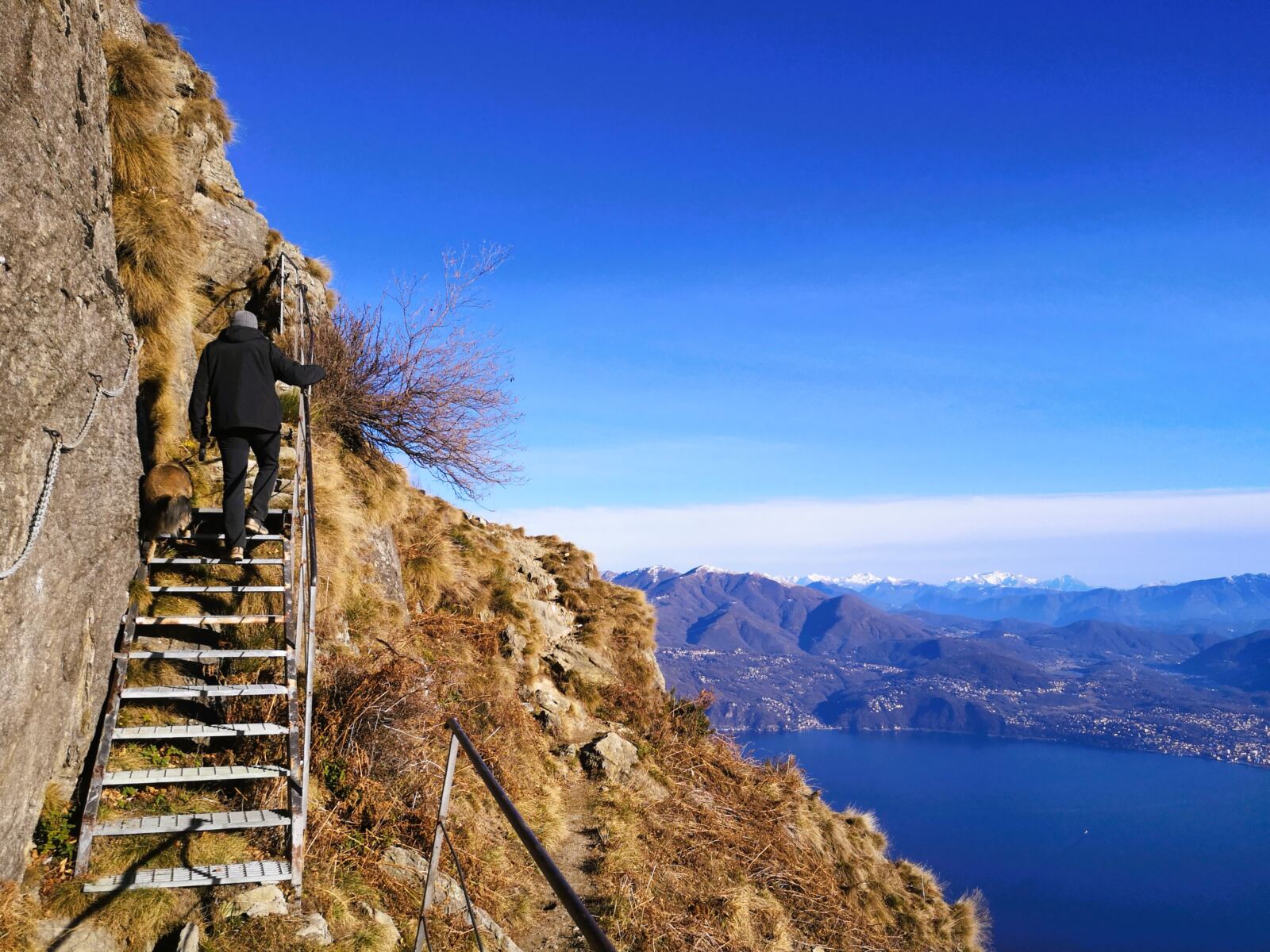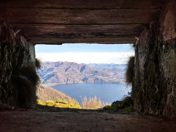 Rund um den Lago Maggiore mit all seinen Aussichtsbergen gibt es offenbar nur einen einzigen Gipfel, der uns eine Draufsicht auf den gesamten See gewährt: die Cima di Morissolo (1.311 m). Der Hausberg von Cannero Riviera erhebt sich über dem westlichen Ufer des Lago Maggiore und zählt zu den niedrigeren Bergen des Verbano. Seine Beliebtheit als Wanderziel verdankt er dem 360-Grad-Blick auf den gesamten Lago und die umliegenden Berge – und der gewaltigen Befestigungsanlage, die sich am und im Berg findet. Die „Linea Cardona“ stammt aus dem 1. Weltkrieg. Die gewaltigte Verteidigungsanlage auf der Grenze von Italien und Schweiz sollte Italien vor einer deutschen Invasion schützen. Im Gipfelaufbau der Cima di Morissolo finden sich Tunnel mit Geschützstellungen und Schießscharten, die vor wenigen Jahren in Stand gesetzt und mit Infotafeln ausgestattet wurden. Mit Hund lassen sich die Reste der Befestigungsanlage prima erkunden. 🐶