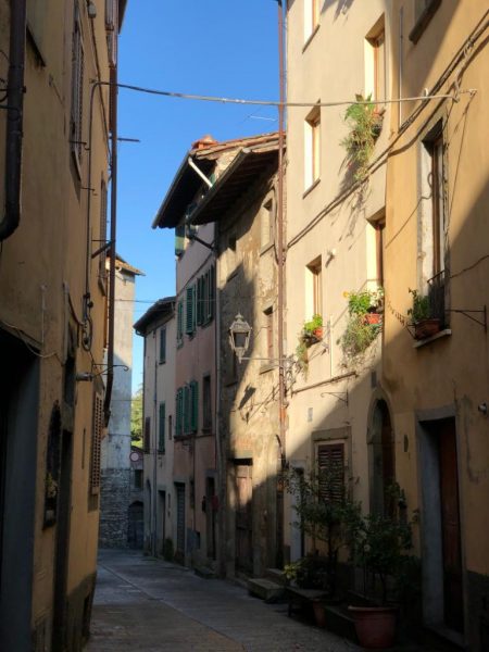 Wenn man als Quartier die Villa Vignacce gewählt hat ist dies der Ausgangspunkt, ansonsten kann man bei der Anfahrt zur Villa (Achtung Privatweg) vor der Brücke parken und von dort aus Richtung Bibbiena starten. Der gut ausgebaute Weg führt immer dem Fluss entlang, nach ca. 400 m gibt es eine breite Furt, hier ist eine gute Badegelegenheit für die Hunde. Nach weiteren 1,5 km muss man die Straße nach Riosecco überqueren und der Weg wechselt auf die rechte Flussseite. Nach weiteren 2,5 km erreicht man Bibbiena. Die engen Gassen und zahlreichen Caffees laden zum bummeln und verschnaufen ein. Zurück geht es auf dem selben Weg.