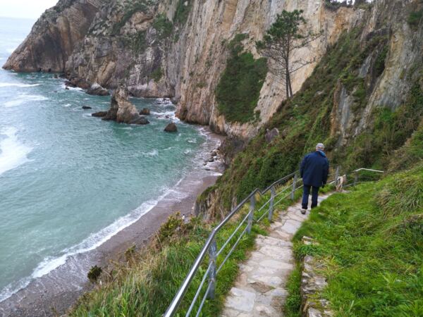 Vom Parkplatz laufen wir bergab, halten uns links und folgen dem Wanderweg in Kehren hinab zur Playa de Silencio. Eine Holztreppe bringt uns hinunter zum Strand. Nur bei Ebbe kann man die Bucht komplett ablaufen. So oder so: ein großartiger Anblick.