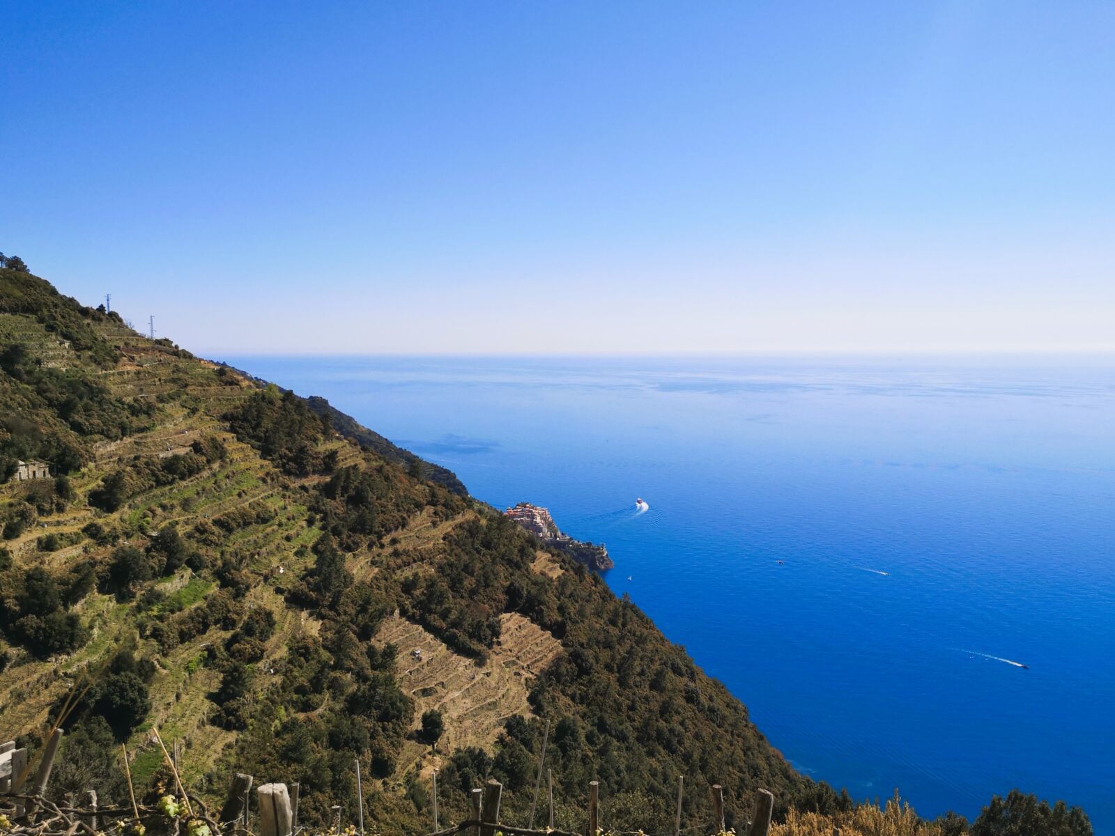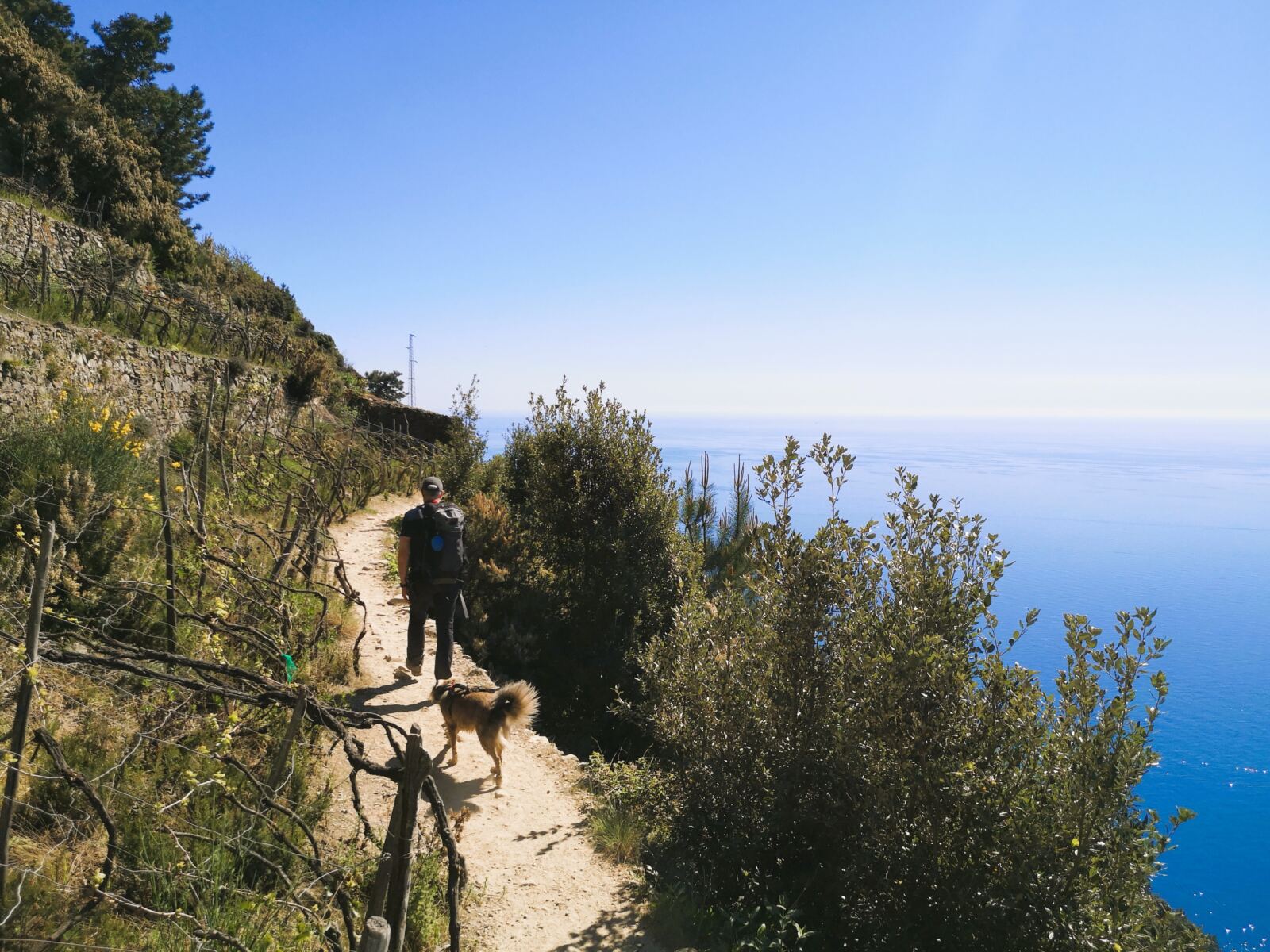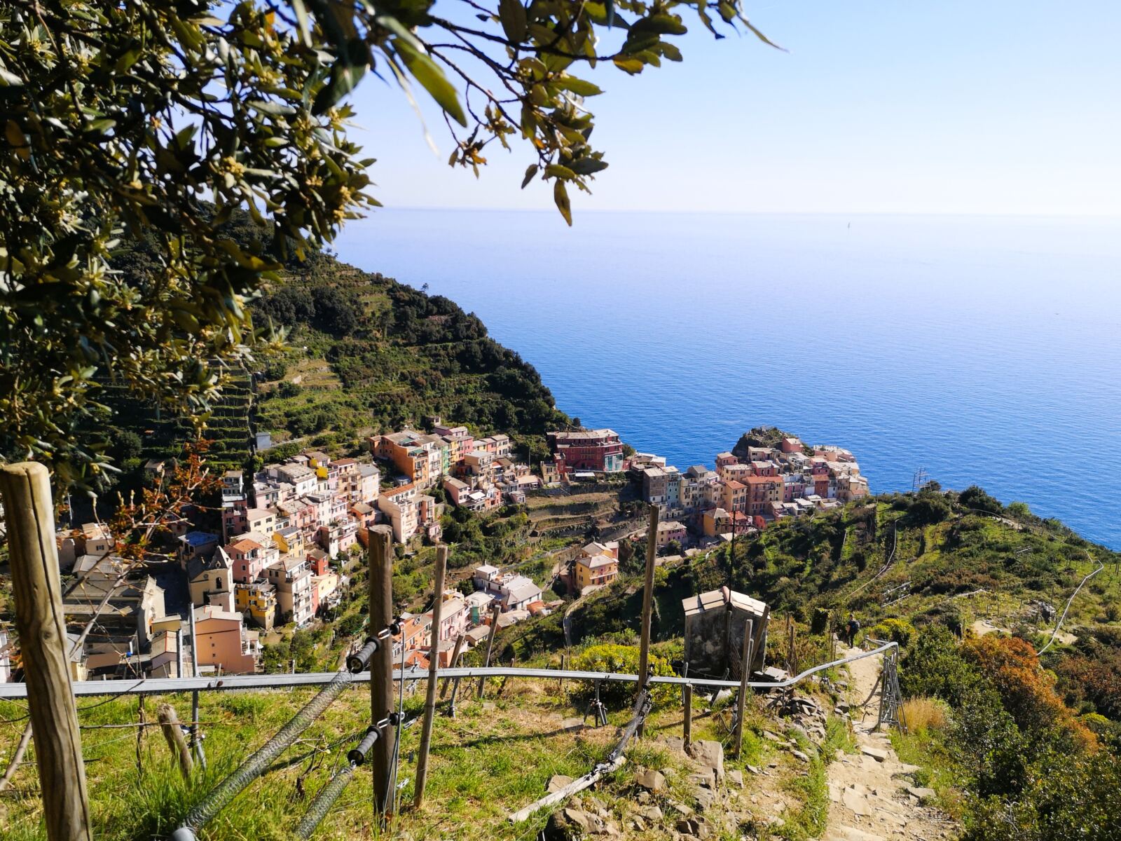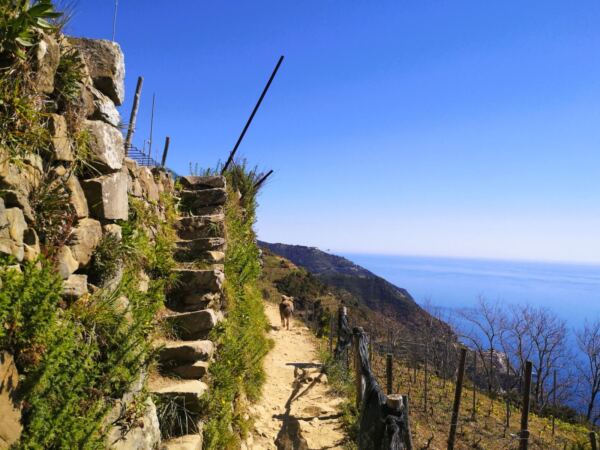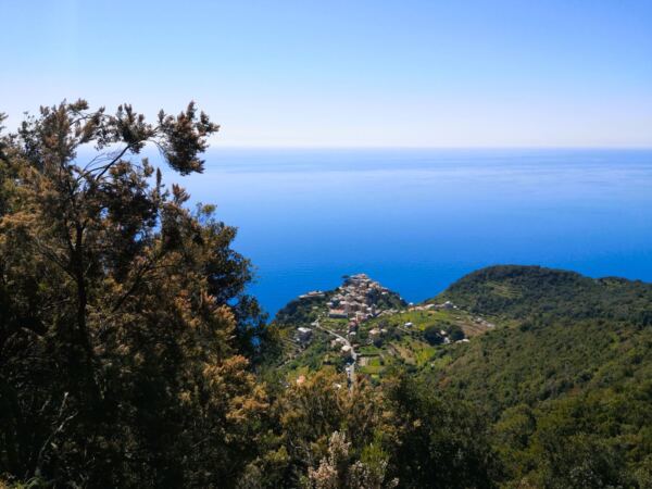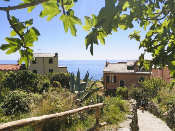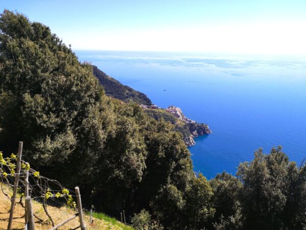 Von hier führt der Weg auf meist angenehm sandigen Pfaden bergab durch die Weinberge Richtung Manarola. Man kann es einfach laufen lassen – begleitet von weiten, durchgehend traumhaften Blicken über die Küste der Cinque Terre.