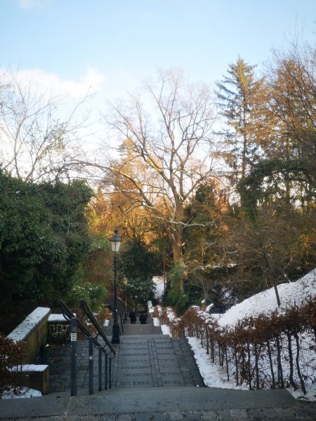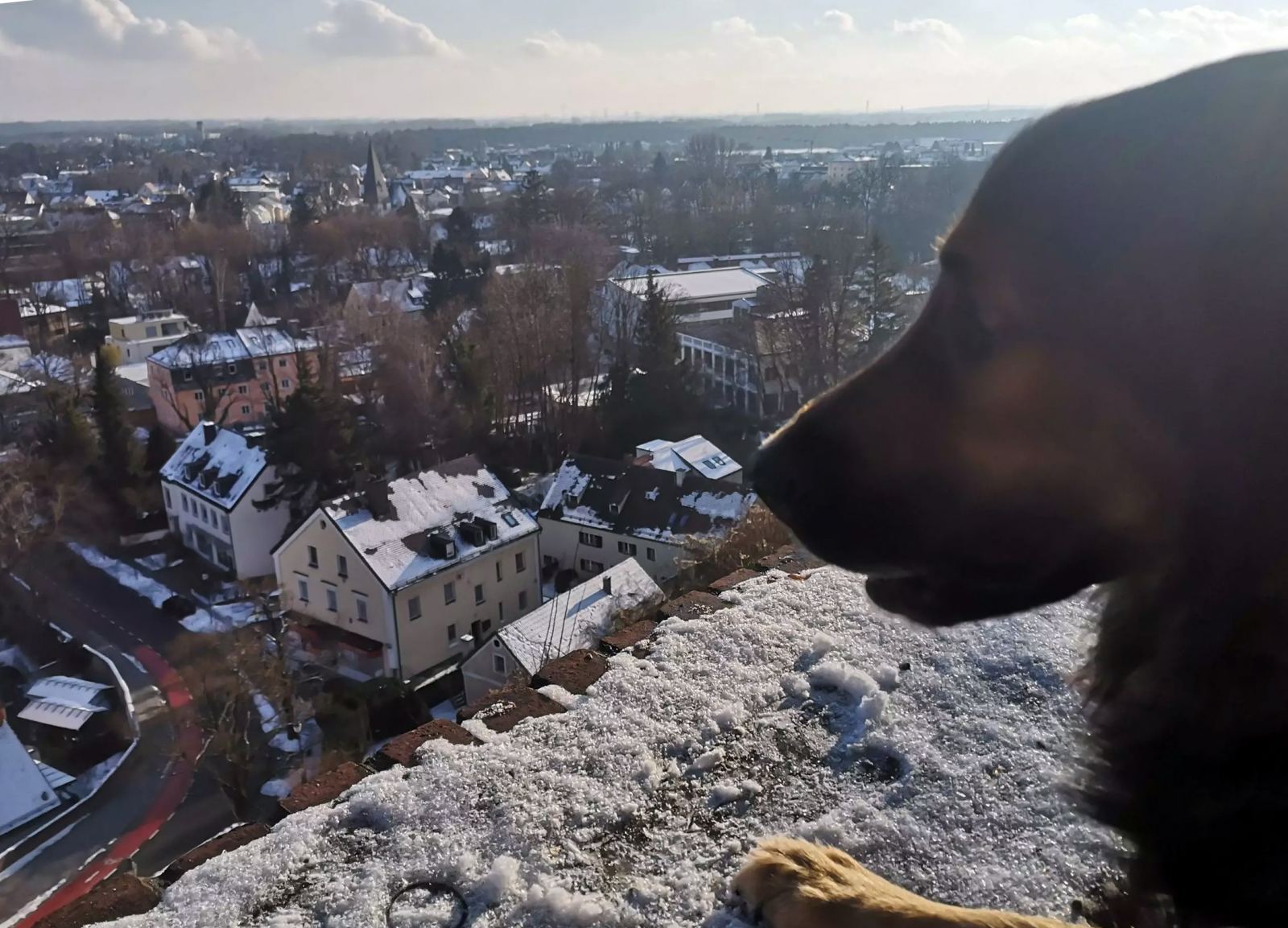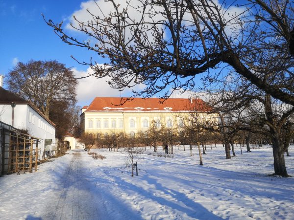 Wir sind am Bahnhof Dachau losgegangen, nach einem Stück entlang der Frühling- und der Martin – Huber-Straße geht es über eine Treppe nach oben zum Schloss. Weiter geht es durch den Hofgarten (Leinenpflicht) und dann über einen schmalen Weg nach unten zur Amper.