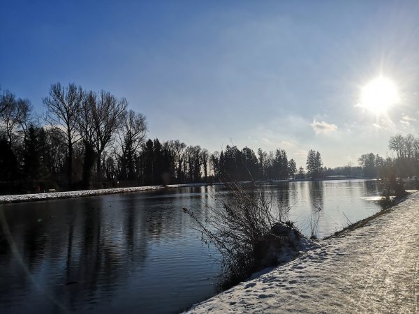 Jetzt geht es geradeaus, immer am Wasser entlang. Achtung: Auf dieser Flussseite gibt es wenig Schatten, was jetzt im Winter sehr angenehm ist. Im Sommer wirds wahrscheinlich schnell recht heiß.