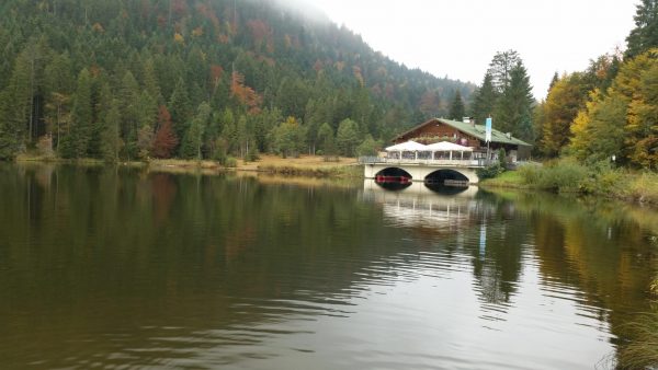 Nebenan liegt die Werdenfelser Hütte, die sich für eine Einkehr anbietet. Dann geht’s zurück über einen Schotterweg zum Pflegersee.