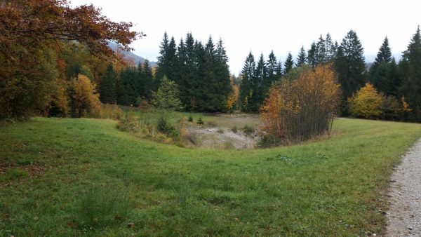 Wir starten am Pflegersee, einem idyllischen See, der im Mittelalter zur Wasserversorgung der Burg Werdenfels angelegt wurde. Hier stehen im Regelfall genügend Parkplätze zur Verfügung. Am See und dem gleichnamigen Gasthof vorbei geht’s bergauf zum Lahnenwiesgraben und ein Stück parallel zu ihm. Dann weiter nach oben, an der Weggabelung rechts bergab zu den Rechbergwiesen und nach Burgrain. Durch die Reschbergwiesen und am Grubenkopf vorbei wandern wir zum Burgrain.