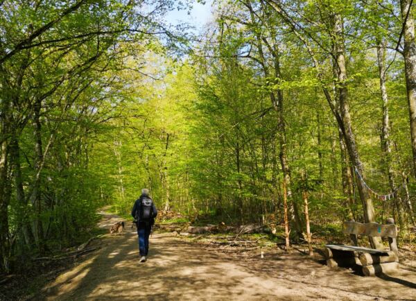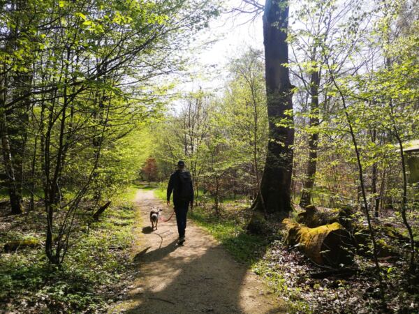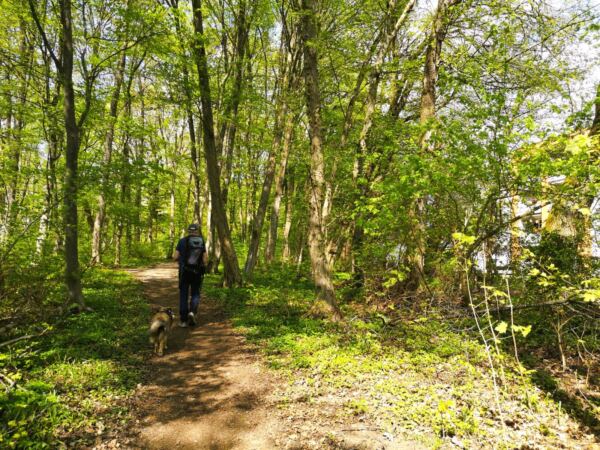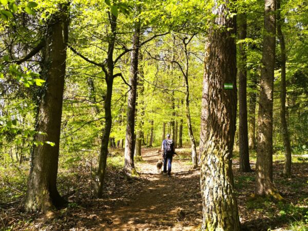 🥾🐾 Unter Füßen und Pfoten: Schmale, weiche Waldpfade und befestigte Forstwege wechseln sich ab. Dazwischen liegen immer wieder kurze Passagen auf geteerten Wegen, die landwirtschaftlich genutzt werden.
