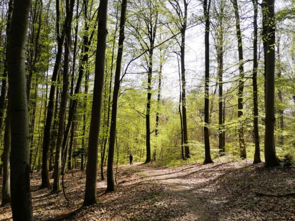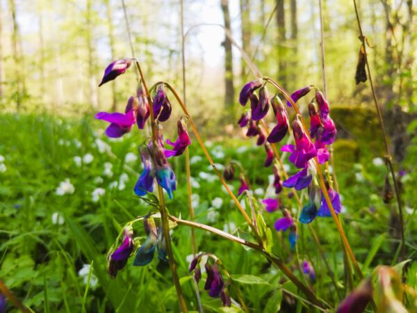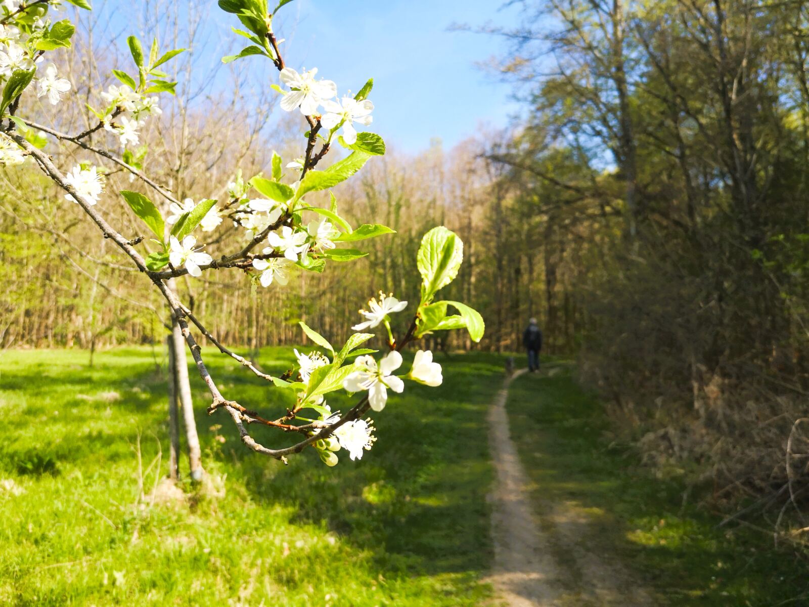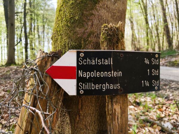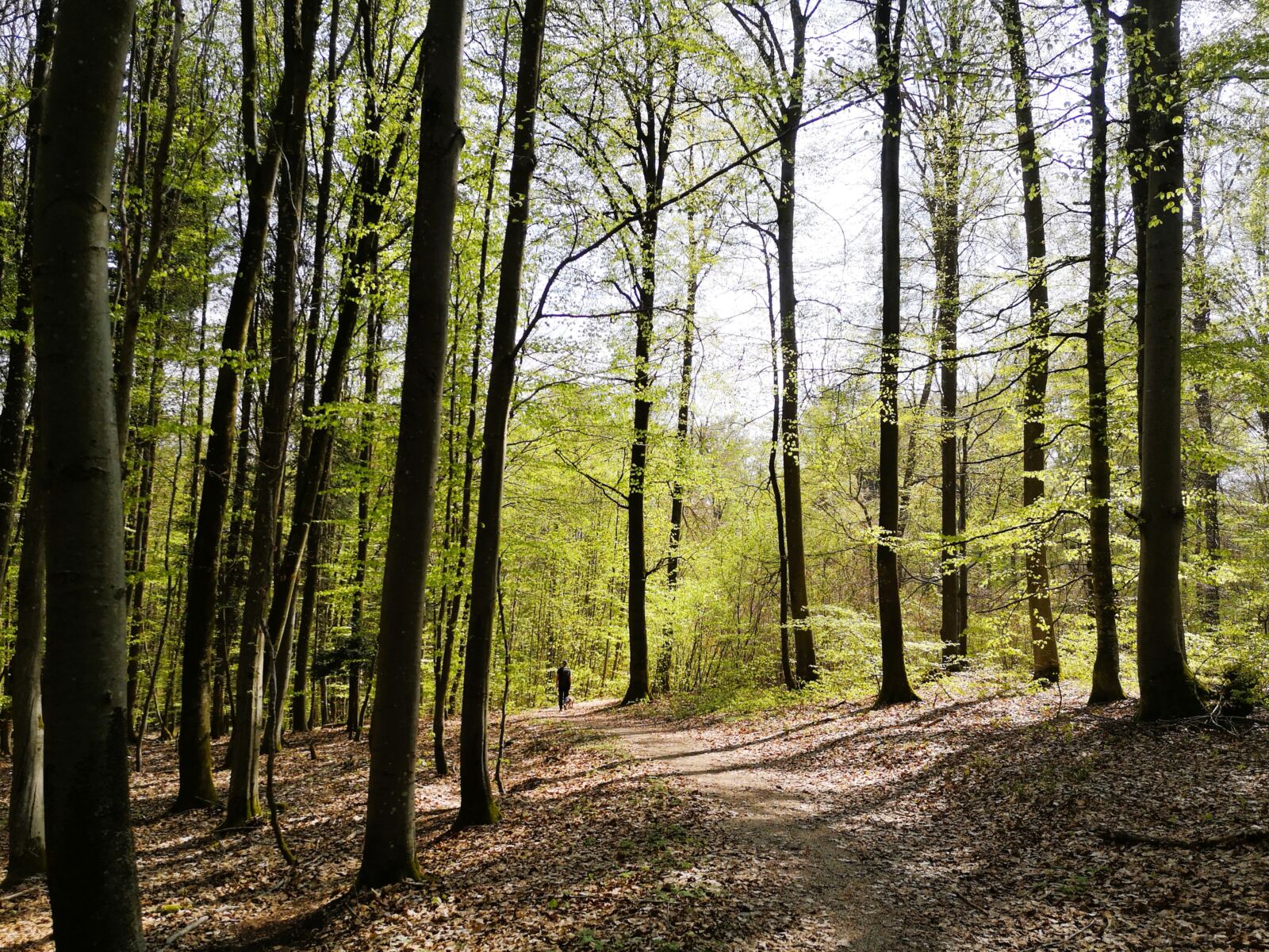 Der Weg selbst führt durch abwechslungsreiche Natur. Entlang eines Waldlehrpfades, der uns ganz entspannt aufschlaut, stehen seltenere heimische Baumarten wie Holzbirne oder Mehlbeere neben klassischen Laubwaldbäumen wie Rotbuchen. Im Frühling sorgen Wildblumen wie Wiesenschaumkraut oder Ringelblumen für Farbtupfer zwischen den Gräsern, während über uns die Vögel um die Wette zwitschern. 🐦🌼