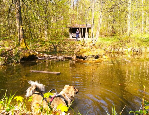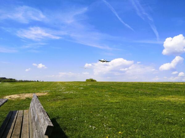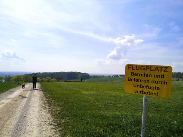 Für wasserbegeisterte Hunde gibt es unterwegs mehrere kleine Glücksmomente: Zwei Weiher im Wald laden zu ausgedehnten Planschpausen ein. Beide sind mit liebevoll gezimmerten Schutzhütten ausgestattet – perfekte Orte für eine Brotzeit. Auch an anderen Stellen stehen immer wieder Picknickbänke. Spannend: die Rast am Segelflugplatz. Wir sitzen genau darunter, wenn die Propellermaschine die Segelflieger hochzieht. Unser Hund brauchte allerdings einen Moment, um sich an die Riesenvögel zu gewöhnen. 🐾