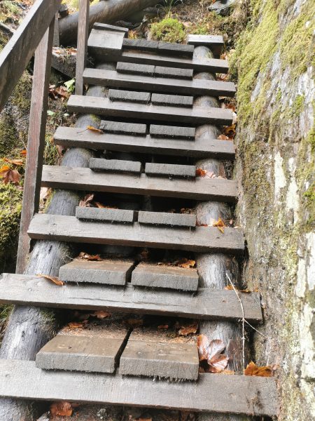 Hunde müssen auf diesem Weg unter anderem Holzstufen hinauf, die steil sind und größere Spalten haben!