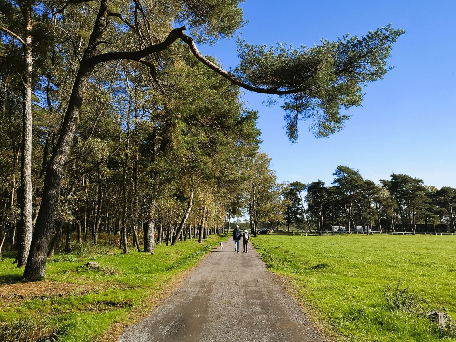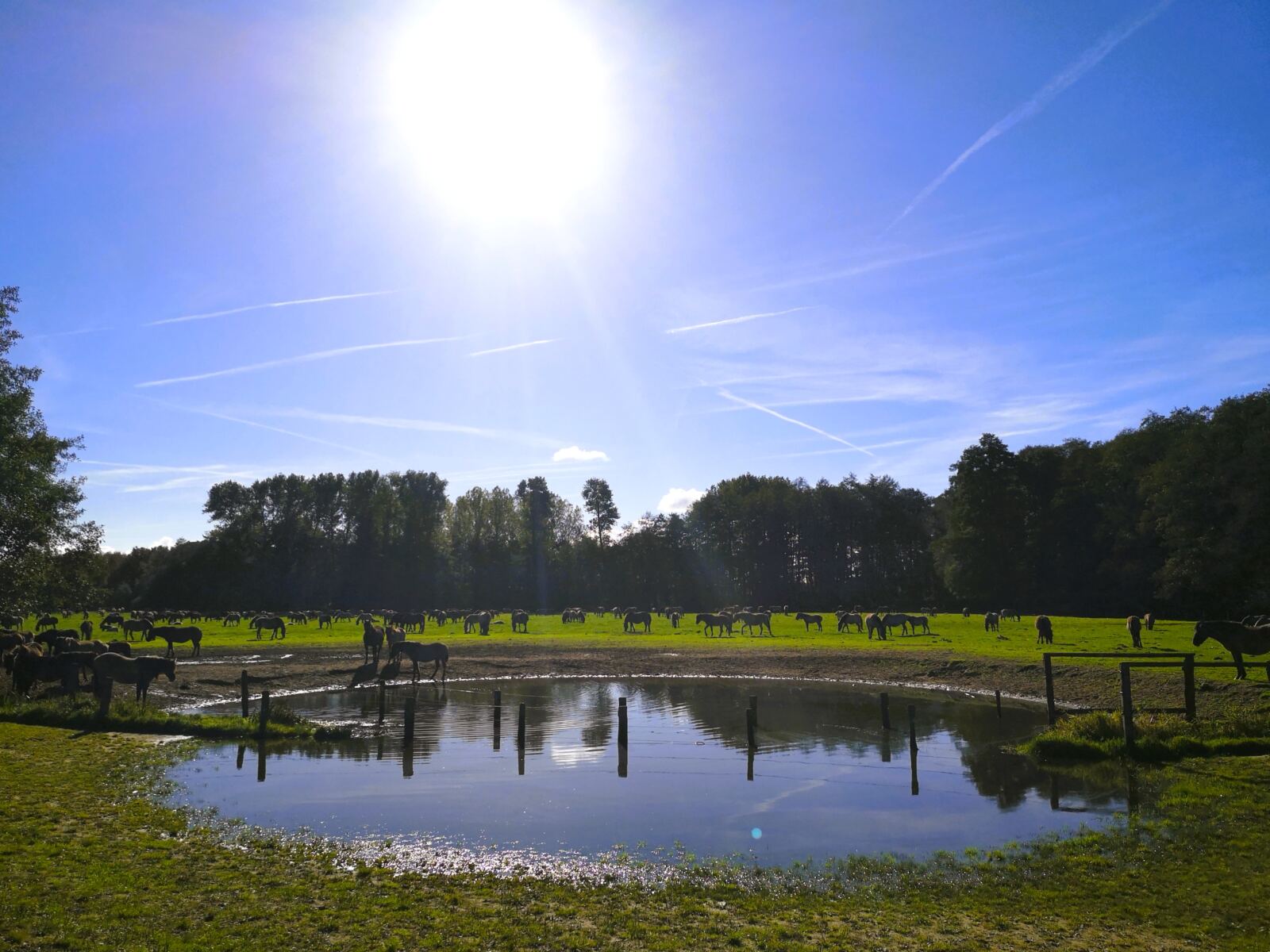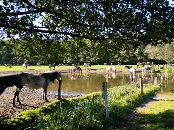 Wer mag, kann den Besuch bei den Wildpferden mit einem Streifzug durch den nahen Dülmener Wildpark verbinden. Der Park wurde einst als Landsitz des Herzogs von Croÿ angelegt. Uns haben vor allem die vielen alleinstehenden, viele hundert Jahre alten Bäume begeistert. Damwild, Rotwild und Schafe bewegen sich frei durch den Park. Für unsere Hunde gilt auch hier Leinenpflicht. Trotzdem einen Besuch wert. 😍