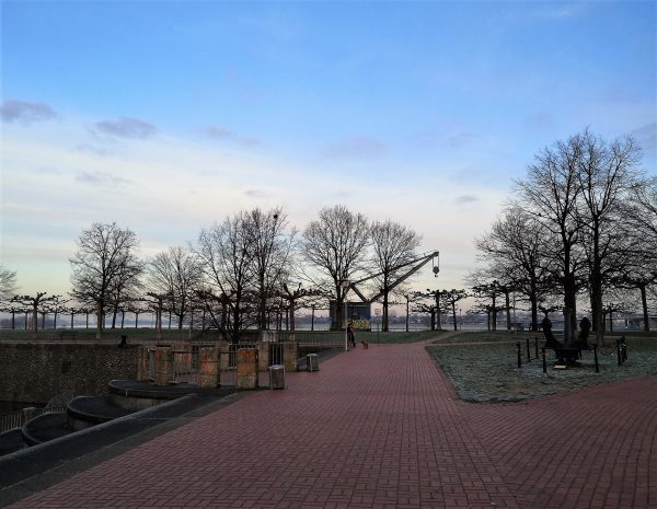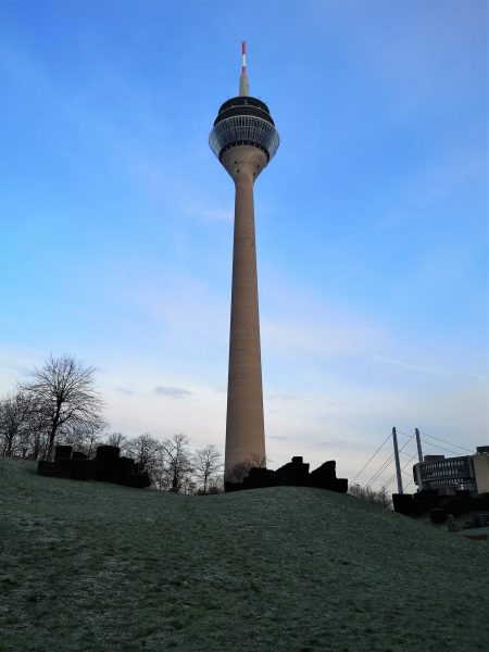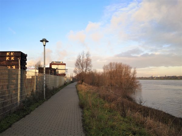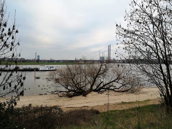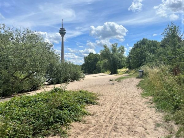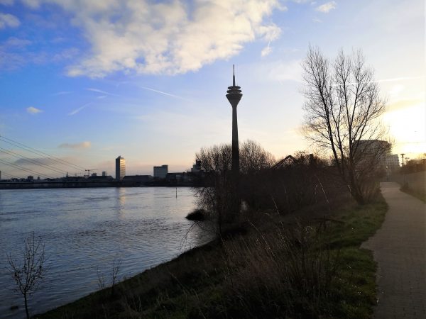 Dieser kleine Spaziergang ist für uns ideal zum Start in den Tag. Alle neuen Wahrzeichen der Stadt müssen wir am frühen Morgen nur mit anderen Hundebesitzern teilen. 🙂  Wir laufen durch den Bürgerpark vorbei am Stadttor. Zwischen Rheinturm und der Marina geht es weiter zum Rheinufer. Hier halten wir uns links. Mit Blick auf die Gehry-Bauten geht es über die Brücke am Medienhafen. Wenig später erreichen wir den Paradiesstrand an der Bremer Straße. Leine los für unsere Hunde. Von hier aus können wir je nach Lust und Zeit immer weiter zwischen Wasser und Wiese Richtung Kraftwerk Lausward und Hamm laufen. Schön bei jedem Wetter und zu jeder Jahreszeit. Und unter der Woche ist es hier auch bei schönstem Wetter und später am Tag immer noch sehr ruhig.