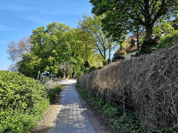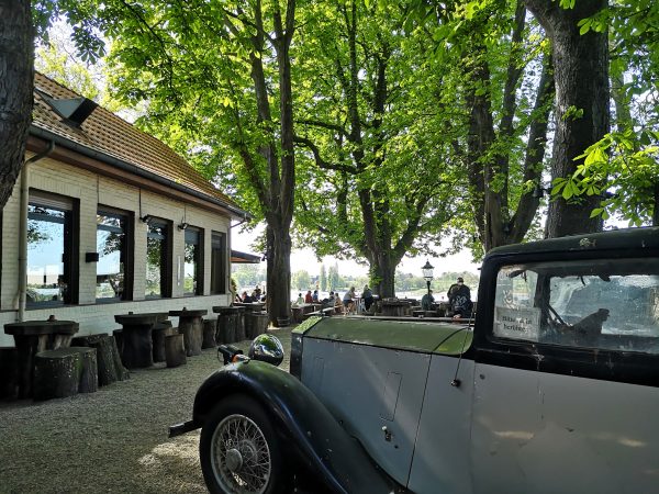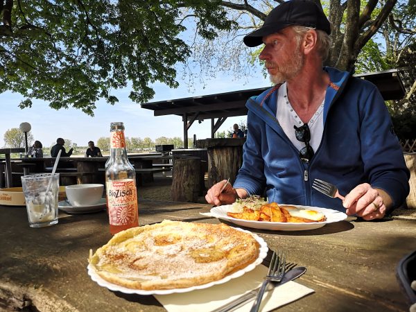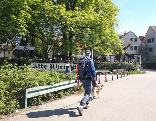 Kurz hinter dem Ausgangspunkt unserer Tour erreichen wir schon den Weg zur Ausflugslokal "Alte Rheinfähre" mit dem schönen Biergarten. Hier wird lecker gutbürgerlich gekocht, der Service ist sehr freundlich, auch hundefreundlich.
