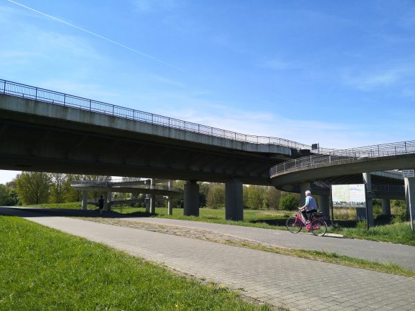 Düsseldorf: Rheinrunde Kaiserswerth, Flughafenbrücke, Meerbusch, Fähre