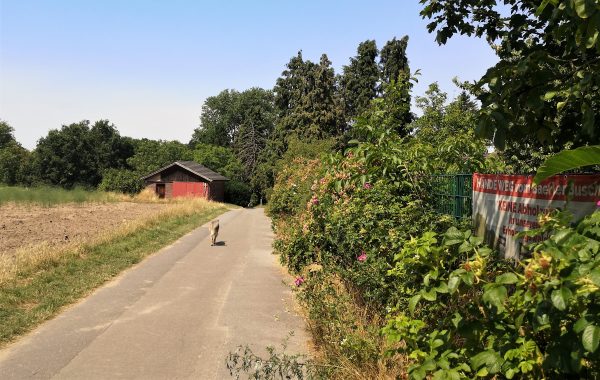 Vom Parkplatz an der Verbandsstraße führt der direkte Weg schnurgerade aus zum See. Den befestigten Weg teilen sich Radler und Spaziergänger. Zu Fuß mit Hund kann bald schon auf weiche Waldpfade ausweichen.