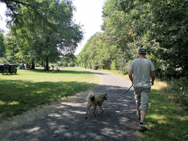 An den Liegewiesen und Grillplätzen gilt Leinenpflicht. Hier ist es an sonnigen Wochenenden ein wenig trubeliger, entlang des Sees verläuft es sich rasch wieder.