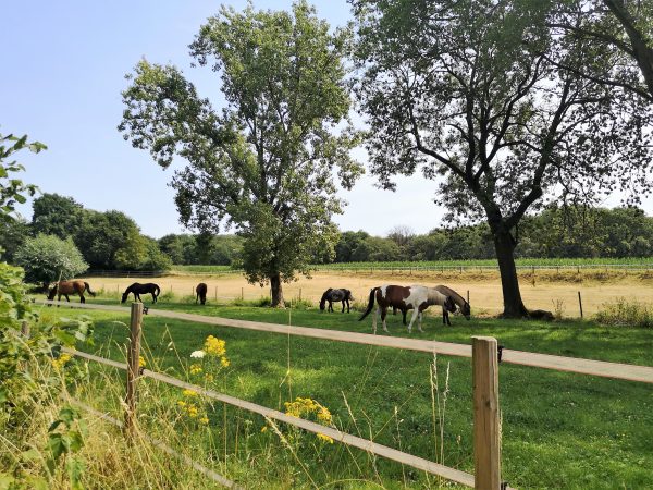 Gegenüber des Seeufers liegen einige Pferdekoppeln.