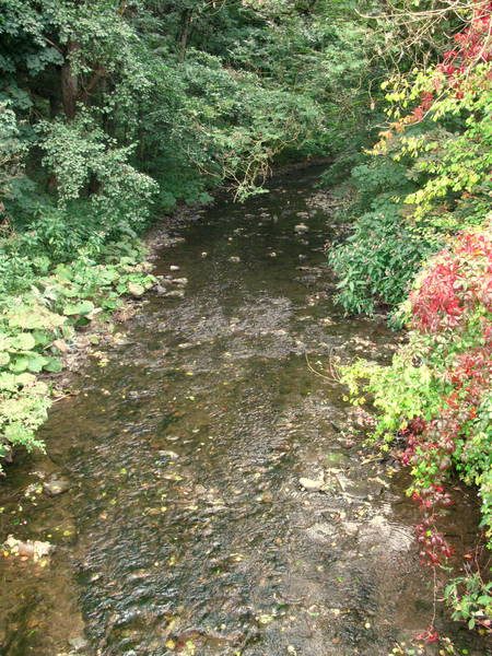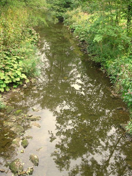 Unter der Hönnetalbahn her geht es zu den Wanderwegen und dann über eine Treppe zur Hönne hinunter. Das Wasser ist auch im Hochsommer eiskalt, das hält die Hunde aber nicht vom Planschen ab.
