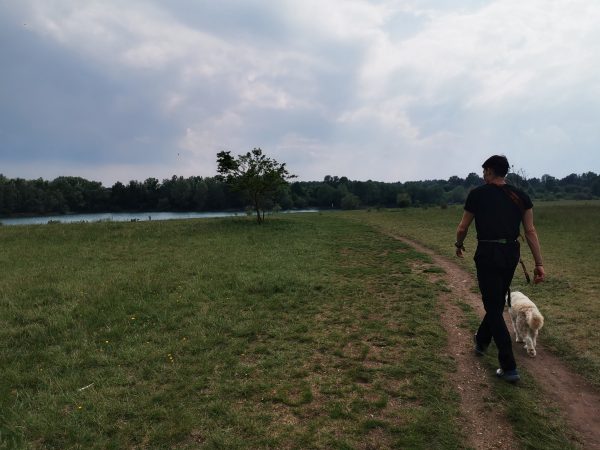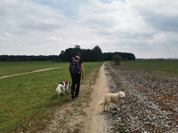 Auf unserer Wanderung folgen wir dem Rundweg durch die Heiden zum See. Der Weg beginnt an einem Pendlerparkplatz, von dem man direkt auf den Weg in die Heide gelangt. Zuerst kommt man an der Kapelle vorbei. Wir laufen links daran vorbei durch die Heide. Relativ am Anfang kommt man an zwei kleinen Weihern (sehen eher aus wie große Pfützen) vorbei. Hier dürfen die Hunde nicht hinein, damit sie die Amphibienpopulation nicht gefährden.