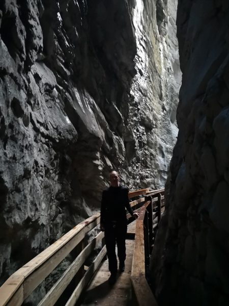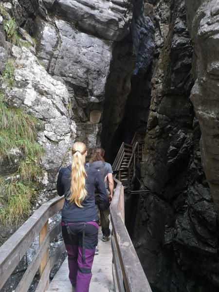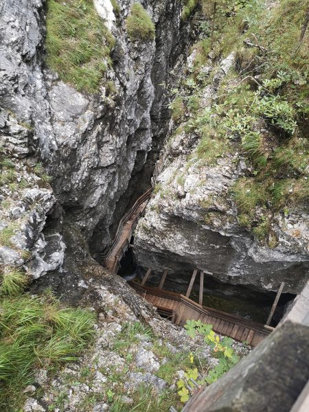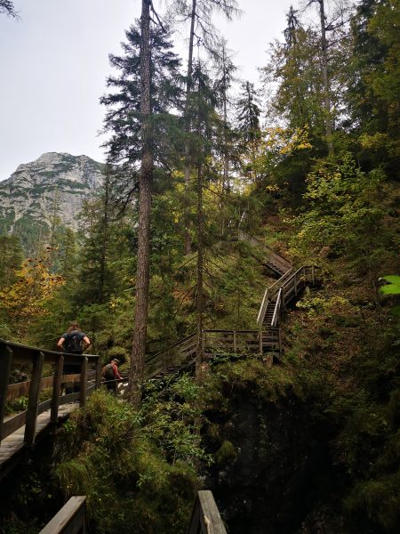 Nach dem Eingang der Klamm geht es direkt bergauf und dann über 51 Holzstege mit 35 Stiegen und 373 Stufen durch die schmale Klamm und dann über einen Pfad wieder nach unten. Zwischen Mai und September kann man mit etwas Glück Orchideen am Wegesrand entdecken.