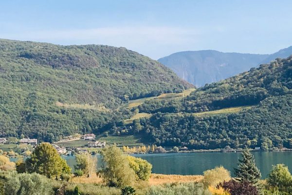 Unterhalb der Südtiroler Weinstraße führt die Strecke zurück zum Kalterer See, auch hier wandern wir durch die Weinberge.