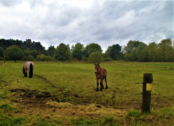 Im Sommer könnte man fast glauben, man sei in Südfrankreich unterwegs und das Meer nicht weit: In der Luft hängt der Duft von Kiefern und das Knacken ihrer Zapfen in der Hitze. Unter den Füßen sandinger Waldboden, und weit geht der Blick voraus. Hier, rechts uns links der Alten Zollstraße an der Grenze zu Holland, kann man komplett entschleunigen. Hin und wieder begegnen uns Reiter, wenige Wanderer, einige mit Hund. Reh und Wildschwein bleiben tagsüber in Deckung. Wunderschön bei jedem Wetter.
