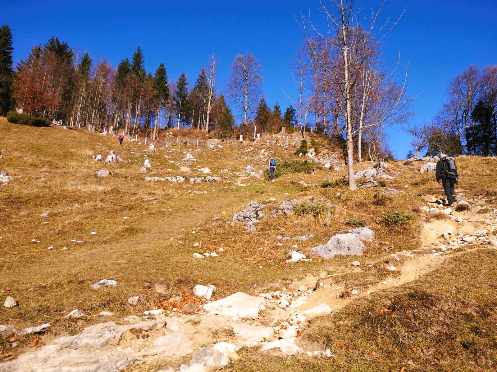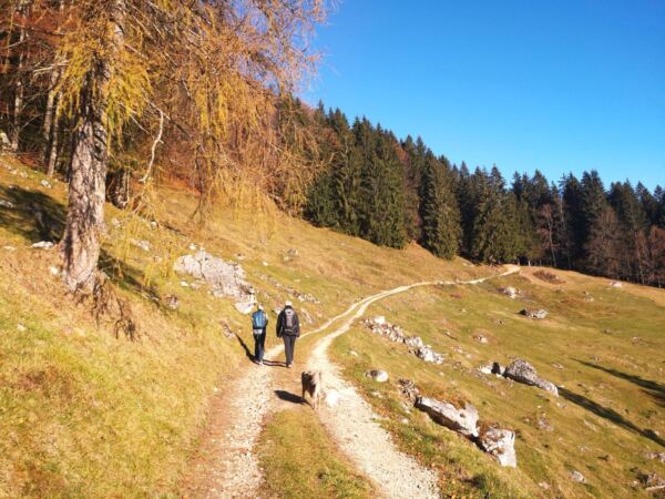 🥾 🐾 Unter Füßen und Pfoten: überwiegend steinig-felsige Bergsteige, teils breitere Almwege.