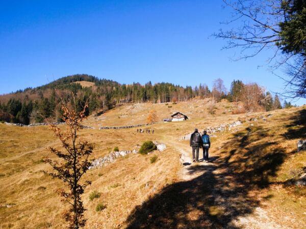 Die Tour führt uns etwa zur Hälfte durch schattigen Wald, zur Hälfte über offenes Gelände. Schön, um im Frühling oder Herbst noch einmal Sonne zu tanken.