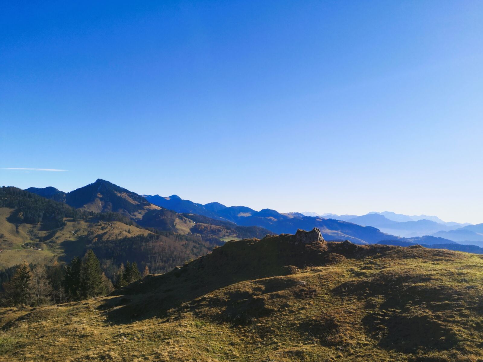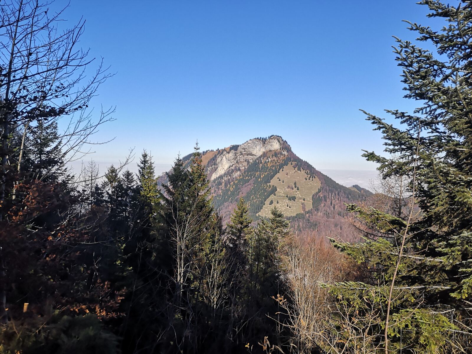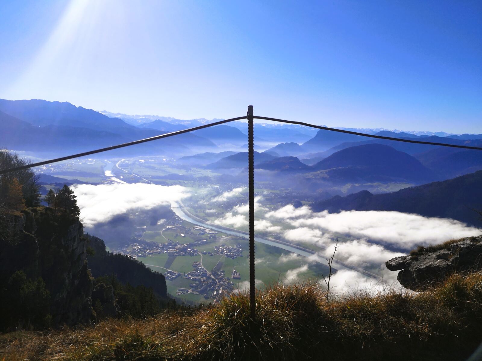 Vorbei an der Alm folgen wir dem Bergsteig weiter bergauf Richtung Gipfel, jetzt schon mit wunderschönem Tiefblick. Nach einem recht knackigen Anstieg erreichen wir die Kapelle (hineinschauen lohnt sich). Dann sind es nur noch wenige Meter hinauf zum Gipfel, der als vorgeschobene Aussichtskanzel am Berg klebt.