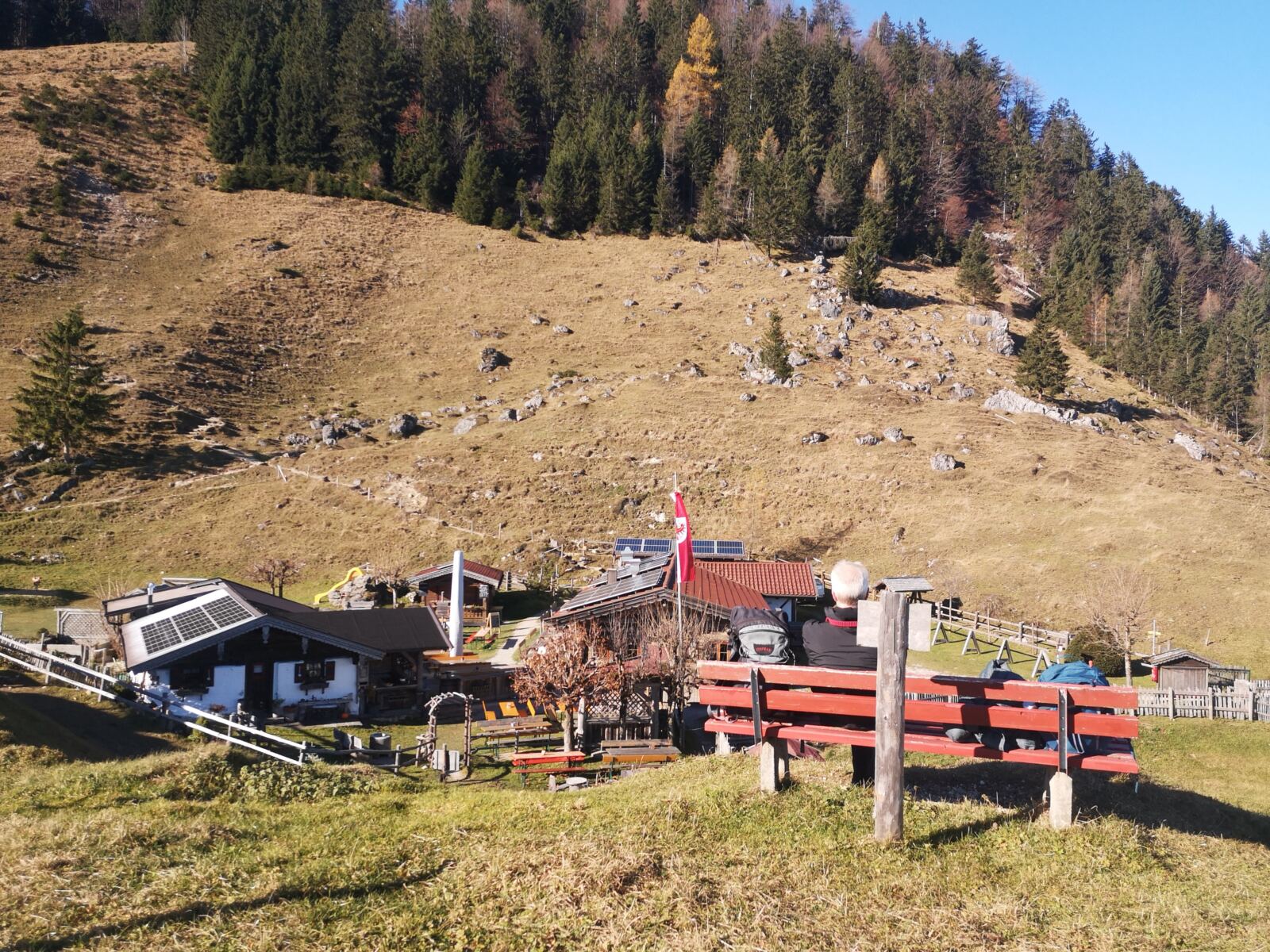 Weiterer Pluspunkt dieser Tour: die Kranzhornalm in Tirol, etwa auf halber Höhe unserer Wanderung. Die Alm mit ihren historischen Bauten und Erweiterungen aus jüngster Zeit ist bis Ende Oktober, bei gutem Wetter auch bis weit in den November hinein noch bewirtschaftet und wegen ihres Spielplatzes und den Ziegen bei Familien mit Kindern sehr beliebt.