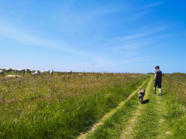 🐕‍🦺 Offiziell gilt auf den Wanderwegen Leinenpflicht. In der Hauptsaison, insbesondere während der französischen Sommerferien, sind viele Abschnitte stark frequentiert. Wer außerhalb der Hauptreisezeit unterwegs ist und keine Weide queren muss, kommt auch mit der Schleppleine klar. Wo nichts los ist, lassen etliche ihre – braven – Hunde auch freilaufen.