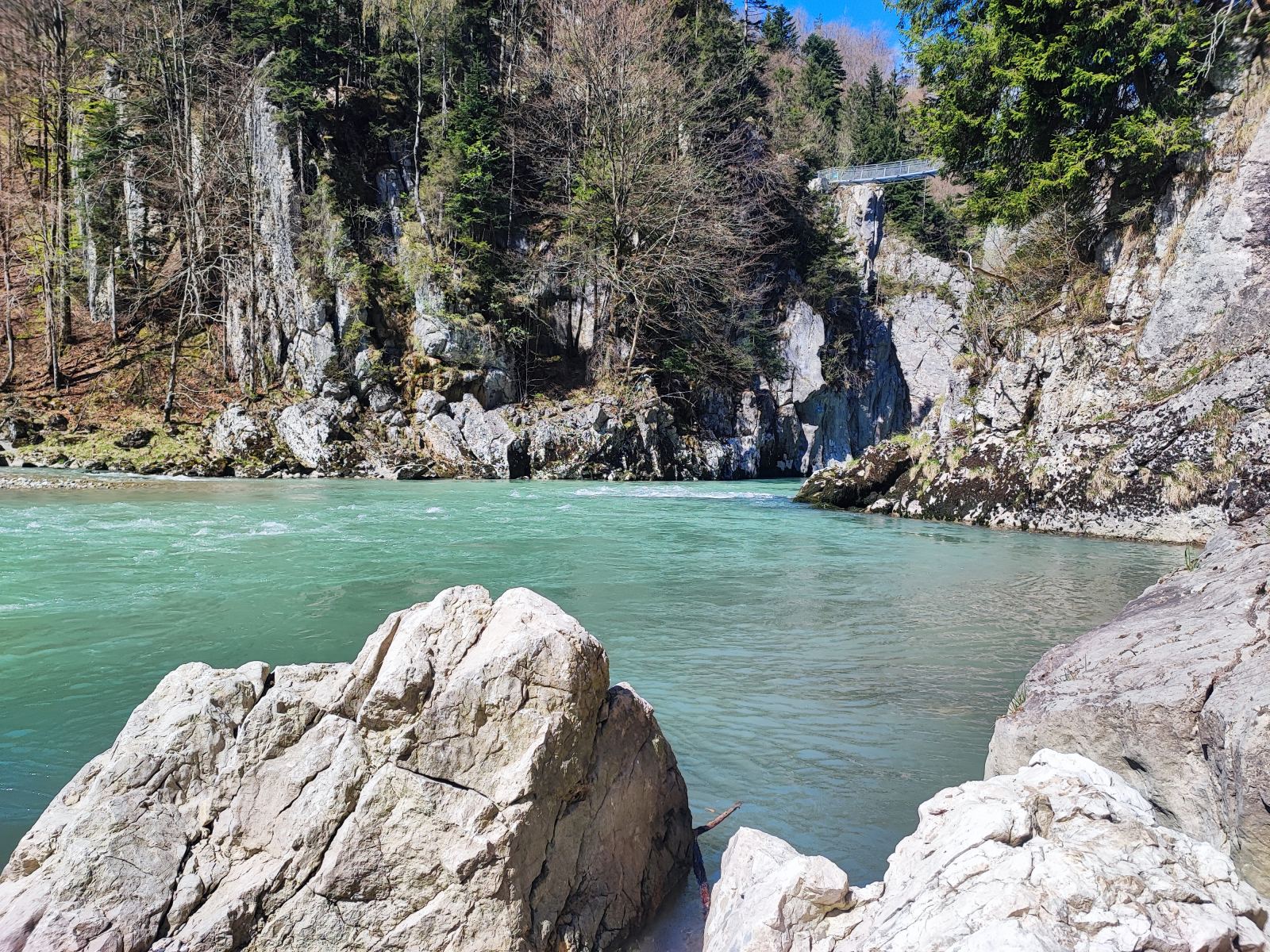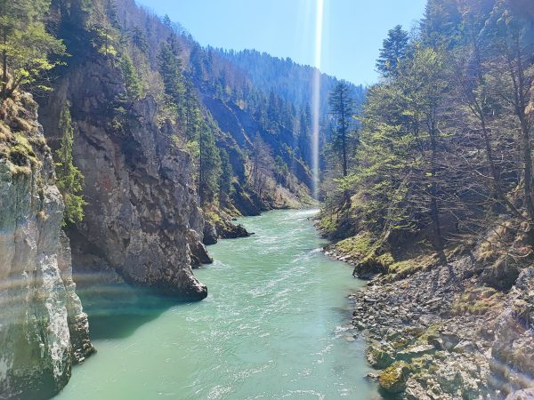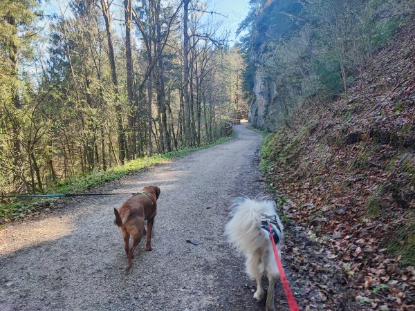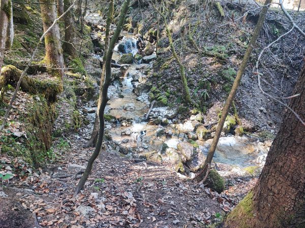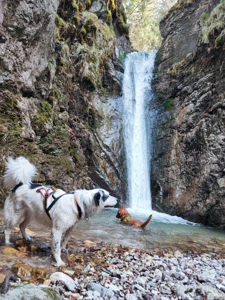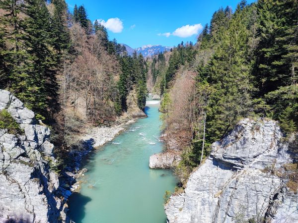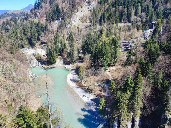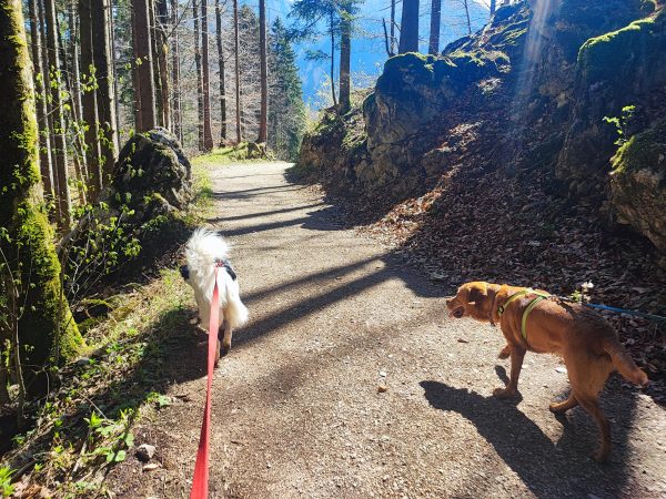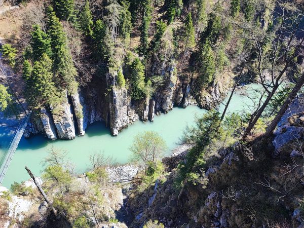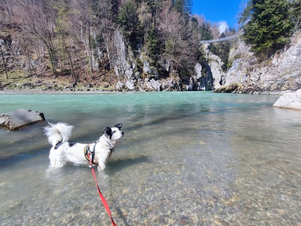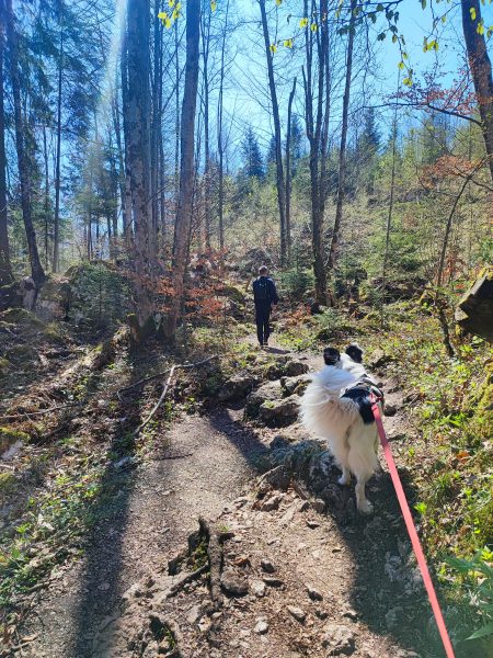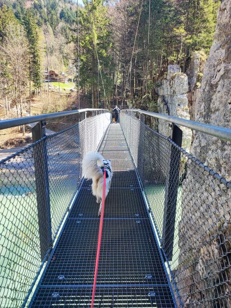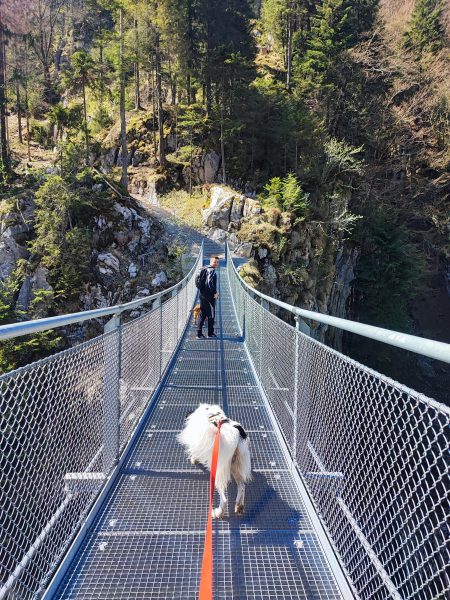Wir starten am Wanderparkplatz in Ettenhausen. Schon nach kurzer Zeit ist man auf wunderbaren Waldwegen unterwegs. Man kreuzt immer mal wieder kleine Bäche. Später geht’s auch über zwei Hängbrücken, über die Tiroler Ache. Aber Achtung: die sind komplett aus Metallgittern.