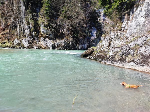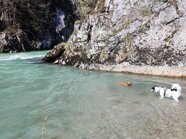 Der Ausblick auf den Fluss ist jedenfalls herrlich! Die Hunde haben das Bad im Fluss genossen!