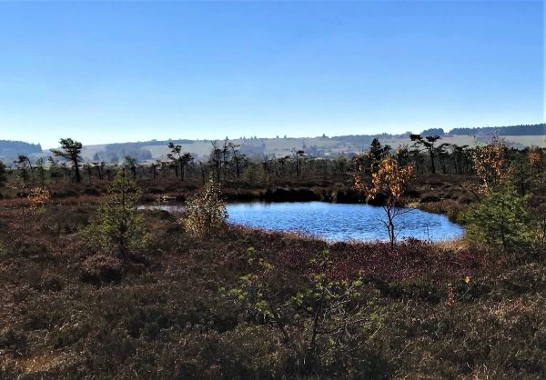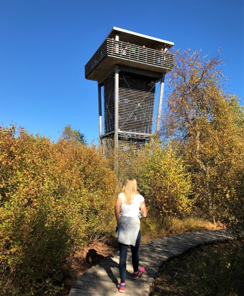 Im Herzen des UNESCO-Biosphärenreservat Rhön, genauer gesagt im Naturschutzgebiet Lange Rhön, liegt eines der bedeutendsten Hochmoore Mitteleuropas: das Schwarze Moor. Durch diesen Lebensraum zahlreicher geschützter Tier- und Pflanzenarten führt ein Bohlenweg, der nicht nur Spaß, sondern schlauer macht. Etliche Tafeln am Wegrand informieren über das Moor und seine Bewohner und bieten Mitmachexperimente für Kinder (und Eltern). Auf dem Bohlenweg müssen Hunde an die kurze Leine, weil die Moorvegetation sehr trittempfindlich ist, schaut also, dass sie auf dem Weg bleiben. Trotzdem lohnt der Besuch. Wer den Vierbeiner vorher auspowern will, sollte das unbedingt außerhalb der Grenzen des Naturschutzgebiets tun. Denn im Naturschutzgebiet lebt Wild, es brüten Vögel und weder Wild noch Bodenbrüter sollen durch freilaufende Hunde aufgeschreckt werden. Und was eigentlich selbstverständlich ist, gilt hier ganz besonders: Hinterlassenschaften eures Hundes unbedingt mitnehmen! Denn die Blütenvielfalt ist in der  Nährstoffarmut der Böden begründet, da ist ein Haufen nicht nur eklig, sondern zerstörerisch. Auf dem Parkplatz gibt es Mülleimer für die vollen Tüten. Besonders stimmungsvoll finden wir es übrigens, wenn sich das Moor in Herbstfarben präsentiert.