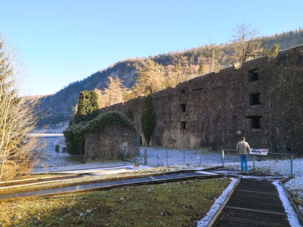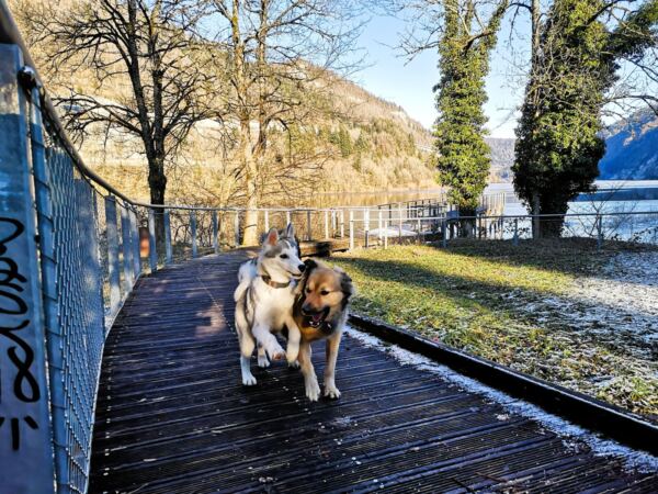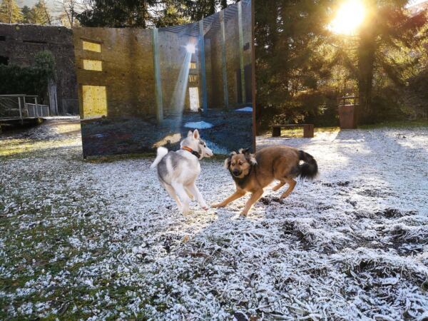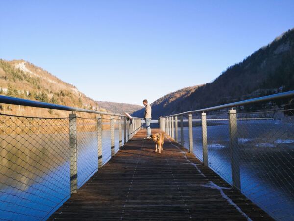 Wir lieben „lost places“. Orte, die von Menschen geschaffen und wieder aufgegeben wurden und die die Natur zurückerobert hat. Lost places erzählen Geschichten und sind oft ein wenig gruselig-gespenstisch. Zu den tatsächlich coolsten lost places, die wir bislang mit Hund erkundet haben, gehört die alte Eisfabrik „Glacières de Sylans“ am Ufer des Lac de Sylans in der Region Auvergne-Rhone-Alpes. Sie liegt direkt an der Autobahn A 40, die Anschlussstelle Les Neyrolles findet sich direkt am See. Wer also quer durch Frankreich reist, kann hier mit Hund bequem einen Zwischenstopp einlegen. Der lohnt sich unbedingt – auch für den Hund. Der kann sich hier austoben, während sich seine Leute an den Infotafeln aufschlauen. Wer mag, kann auch noch am Ufer entlangwandern. Planschpausen für den Vierbeiner inklusive.