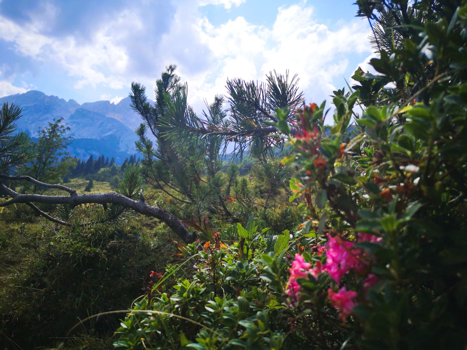 Wie schön: Zwischen Latschen blühen noch bewimperte Alpenrosen.