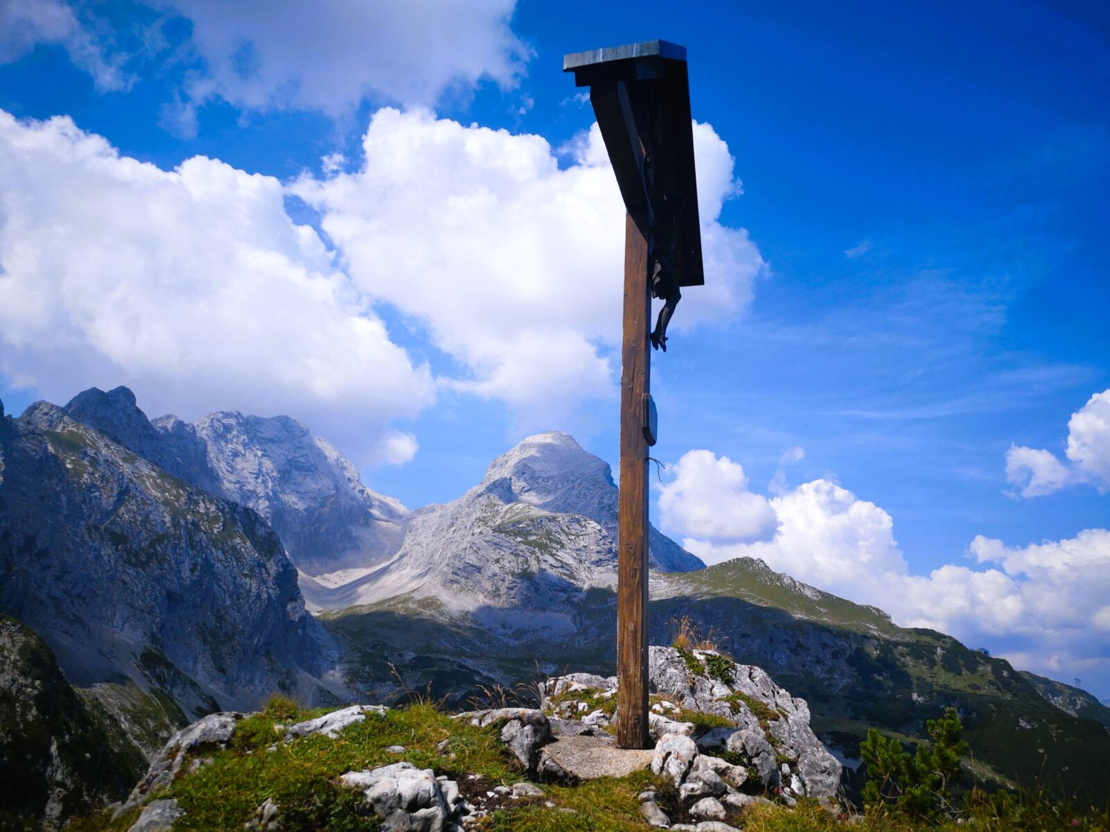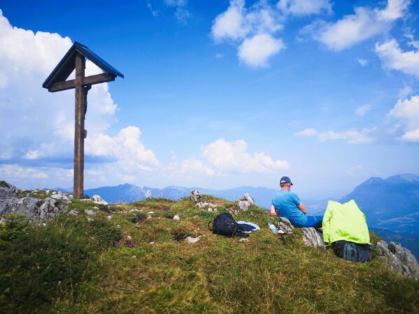 Auf der Stuibnspitze mit ihrem Gipfelkreuz. Hier machen wir eine lange Rast.