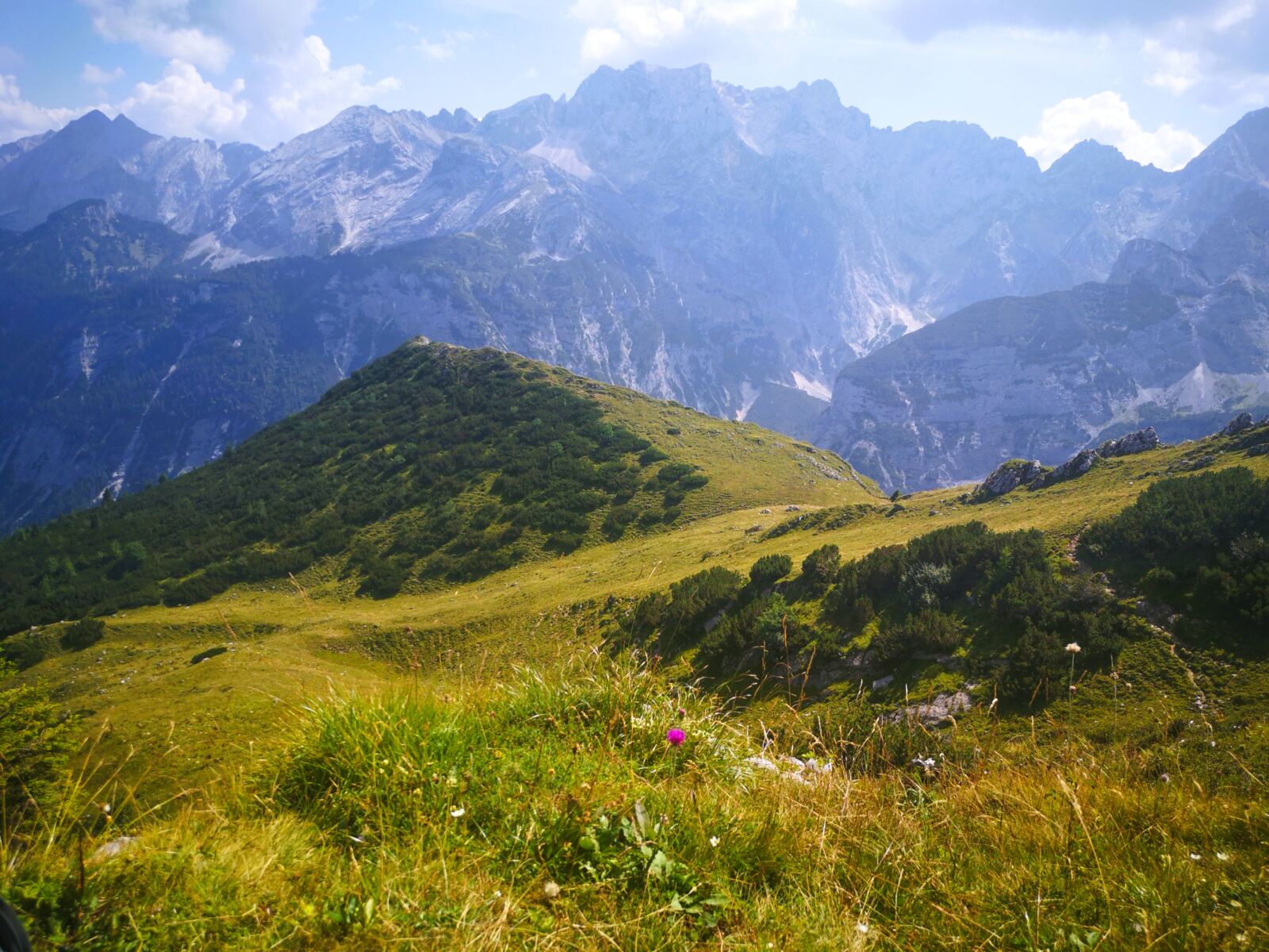 Als wir eine Freundin von uns, eine gebürtige Garmischerin, nach dem Stuibn fragten, sagt die nur: „Da geht man nicht rauf.“ Wie Recht sie hatte. 😊 An einem herrlich sonnigen Tag mitten in den Sommerferien, sind wir hier, auf dem Stuibn im Wettersteingebirge, mit all der Schönheit drumherum ganz allein.