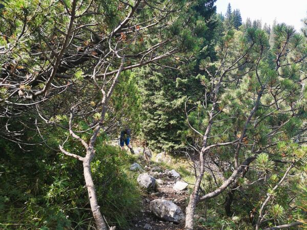Stellenweise bedrängen Latschen den Steig.