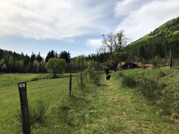 Weiche Wiesenpfade auf dem ersten Teil der Strecke, die über den Grenzgängerweg führt.