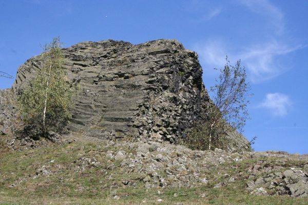 Unser Weg führt weiter, um einen ehemaligen Basaltsteinbruch herum, zur Herkuleshute, um eine Viehweide auf weichen Wiesenwegen zu durchqueren.