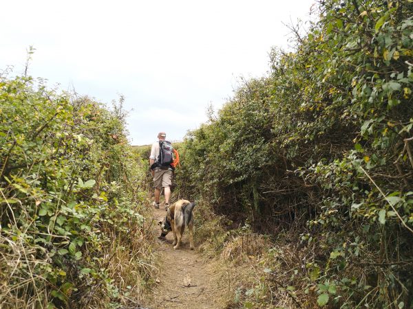 Auf der Strecke gilt Leinenpflicht. Mit einer Schleppleine sind wir hier super zurecht gekommen. Hunde, die sich sehr gerne nahe an Abbruchkanten wagen und offenbar den Weitblick genießen (alle unsere Hunde haben das bisher getan, keine Ahnung warum. :-)) muss man freilich im Blick behalten. Allzu aufgeregte Vierbeiner, die über einen spannenden Duft das Hinschauen vergessen, besser an der kurzen Leine führen.