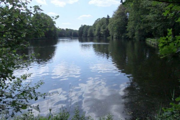 Nach Behringen trifft der Weg auf den Brunausee und schlängelt sich an dessen Ufer entlang.