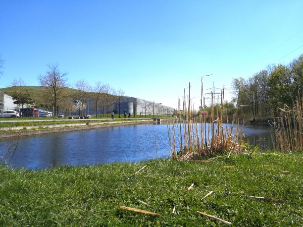 Auf dem Teersträßchen zum Fuß der Halde Hoppenbruch, einst eine Schutthalde, die aufwändig bepflanzt wurde.