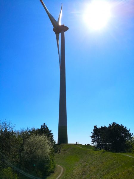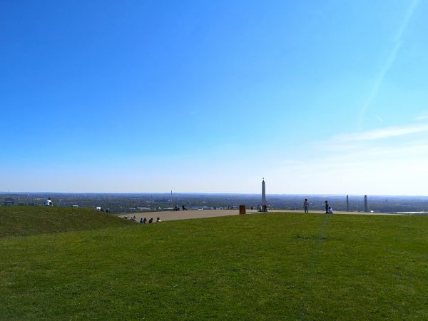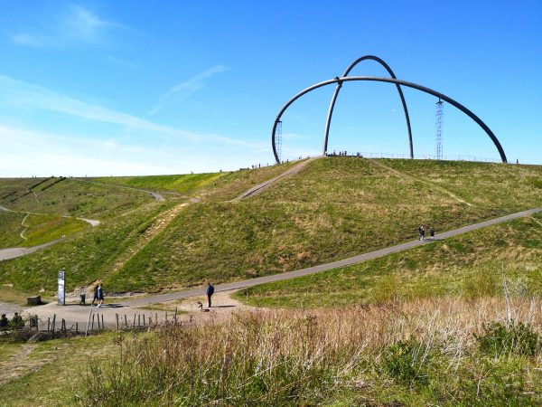 Ausgangspunkt unserer Runde ist der Parkplatz des Besucherzentrums der Zeche Ewald an der Ewald-Straße. Wir überqueren die Ewaldstraße, biegen links ab und laufen Richtung Süden an der Straße entlang. Dabei kommen wir auch an einigen schönen Häusern vorbei, in der die höheren Angestellten der Zeche wohnten. Kurz vor der Brücke über die Ewaldstraße überqueren wir die Straße an der Ampelkreuzung und biegen ein in die Max-Planck-Straße. An der nächsten Möglichkeit biegen wir rechts ab auf die Ewald-Promenade, die uns an einem kleinen Kanal entlang zum Mondsee führt. Am Mondsee biegen wir rechts ab und folgen dem geteerten Sträßchen, das uns links hinab in den Wald und zum Fuß der Halde Hoppenbruch bringt. Hier halten wir uns kurz rechts und wechseln vom Schotterweg auf den schmalen Waldpfad. Wir halten uns nun immer recht stramm bergauf auf dem Waldpfad, queren hin und wieder immer wieder den Schotterweg. Nach einigen Höhenmetern im Schatten von Birken und Buchen erreichen wir schließlich das Plateau auf der Halde Hoppenbruch. Ein traumhafter Rundumblick, schön erklärt auf Reliefkarten, erwartet uns hier. Außerdem Bänke, um den Blick auch gebührend zu genießen. Machen wir. 🙂 Zur Linken sehen wir bereits die höhere Halde Hohenward mit den hohen Bögen des Horizont-Observatoriums. In diese Richtung orientieren wir uns beim Abstieg. Wir folgen dem Schotterweg bergab, biegen scharf links ab und laufen geradeaus weiter. Bei nächster Gelegenheit tauschen wir wieder den Schotterweg gegen den Waldpfad. Durch den Wald laufen wir hinab, im Zweifelsfall halten wir uns links. So erreichen wir schließlich den Rad- und Fußweg am Fuß der Halde Hoheward. An der Kreuzung mit der Bank unter dem ersten Aussichtsbalkon beginnen wir unseren Aufstieg auf einem zunächst geschotterten Wanderweg. In der nächsten Biegung halten wir uns rechts. Wo immer möglich, legen wir auch hier unseren Aufstieg auf den Waldpfaden zurück, die uns um die Halde nach oben führen. Dabei kreuzen wir immer wieder den Schotterweg. Schließlich erreichen wir das östliche Gipfelplateau mit dem Obelisken, der als Zeiger einer riesigen Sonnenuhr fungiert. Nach einer kurzen Genießerpause steuern wir das nördliche Plateau mit dem Observatorium an. Einmal den Hügel hinunter und wieder hinauf. Großartige Blicke und grüne Weite. Wunderschön. Von hier oben laufen wir parallel zur geteerten Straße den Berg hinab. So erreichen wir die Zeche Ewald und den Biergarten um die mit gutem Grund beliebte Burgerbude Moto 59. Tolle Saucen, auch vegane Burger und Süßkartoffelpommes im Schatten des alten Förderturms. Was für eine Kulisse.