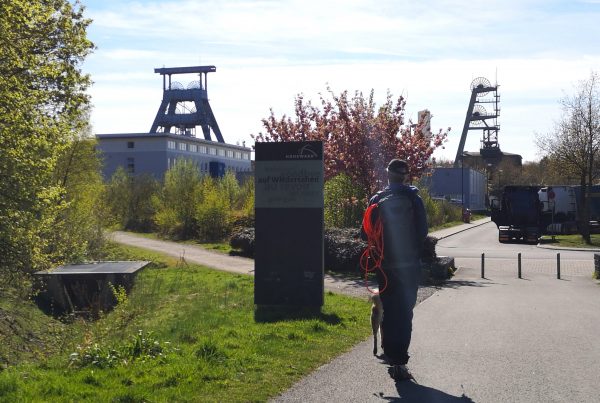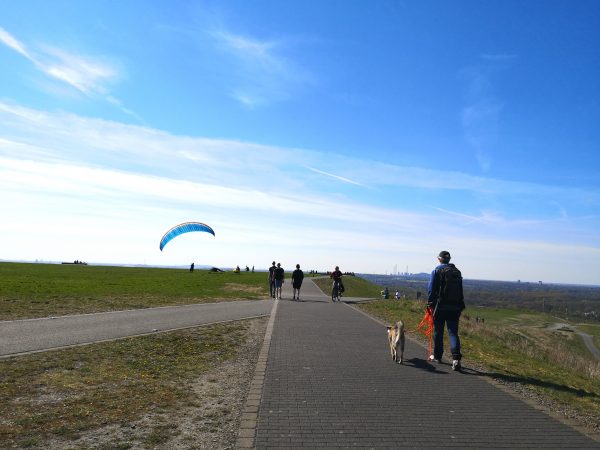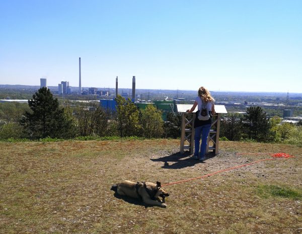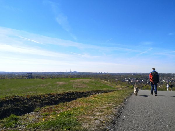 Wald, Wiesen und Weitblick über das Ruhrgebiet – diese Runde durch den Landschaftspark Hoheward bietet so ziemlich alles, was Mensch und Hund schätzen. Wer mag, kann die größte Haldenlandschaft Europas auf vergleichsweise steilen Wegen erklimmen. Kein Wunder, dass mancher hier für Bergtouren in den Alpen trainiert. Auf den schmalen Pfaden hoch zur Halde Hoppenbruch mit dem weithin sichtbaren Windrad sind wir fast alleine unterwegs, nur begleitet von Vogelgezwitscher und dem Summen der Insekten. Auf der Halde Hoheward tummeln sich auch einige Spaziergänger, Hunde, Radler, Quadfahrer und Gleitschirmflieger. Doch das Gelände ist so weitläufig, dass man sich selbst an einem sonnigen Feiertag nicht unangenehm in die Quere kommt. Unsere Runde lässt sich wunderbar im Liegestuhl beschließen vor der beeindruckenden Kulisse der Zeche Ewald. Mit den besten Burgern und Pommes weit und breit. 🙂