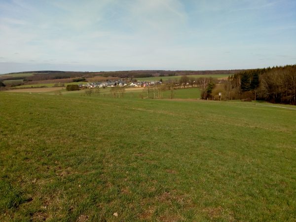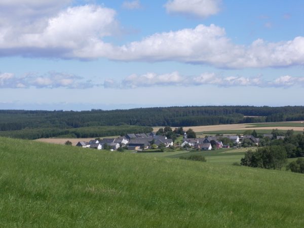 An der „Anhöhe Scheid“, vor Götzeroth, verlassen wir den Wald, hier bietet sich eine traumhafte Aussicht über das Kirchspiel. Dann geht es durch den Ort und in ein idyllisches Bachtal.