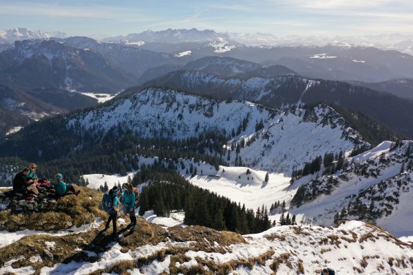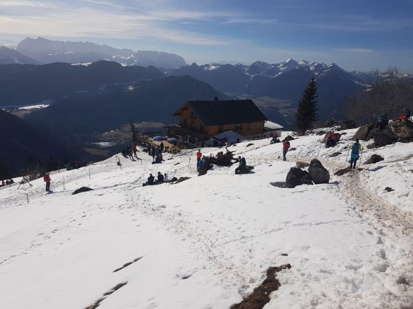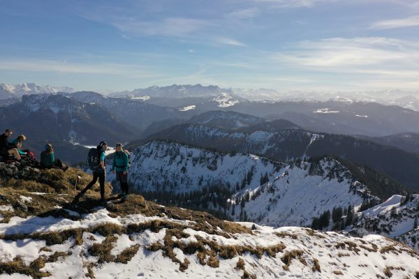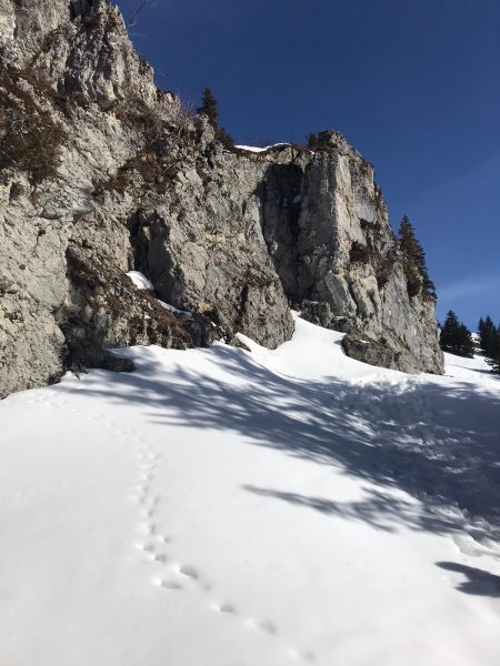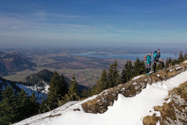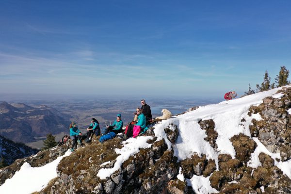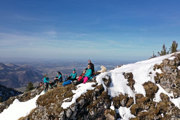 Diese Tour geht sehr entspannt los und man läuft von Marquartstein erst mal der Beschilderung Richtung (Hochgerner Hütte) los. Hier hat man immer wieder die Möglichkeit zwischen der Forststraße und einem Wanderpfad zu wählen. Entsprechend sanft oder steil geht es bergauf. Im Sommer sind hier jede Menge Radler auf der Forststraße unterwegs weshalb dann wohl der Wanderpfad die klügere Wahl ist. Im Winter jedoch sind keine Radler unterwegs und man kann gemütlich die Forststraße entlang laufen. Die Tour verläuft meist im Schatten der Wälder und ist entsprechend auch im Sommer gut mit Hund machbar.